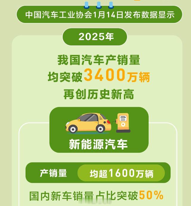在今年的一月份中旬,2025年的汽车销量数据发布,全年产销量均突破了3000万辆,其中的新能源车占比已经接近50%,放在以前大家可是想都不敢想,但是2025年的国内市场确实是做到了,那就来回顾一下25年新能源车都做了那些重大的突破。一、“新能源汽车新车销量首次超过新车总销量50%”不需要任何的定语,而这正是我国在2025年10月达成的成就。“超50%”不是一个简单的数字,是新能源车在产品以及市场进入成熟阶段的分水岭。二、合资品牌本土化如今合资品牌渗透率已经不足25%,国内市场变化之快,让不少合资品牌开始寻求更有效的转型战略,而本土化就是主要的手段。在国内想要开发快,就必须要有本土开发权,对此不少合资车企的研发都已经由中国本土团队主导。只有快,才可以适应中国的速度。三、卷硬核技术,站上国际舞台想要让别人在国际上看到中国汽车,硬核的技术实力就是最基本的条件。小米SU7 ULtra和仰望U9X在纽北上的表现无疑是具有里程碑意义的事件,除此之外的智能技术方面,智驾、电池技术、安全性等等。在行业中的每一项赛道,中国新能源汽车都在上面不断创新,每一项技术突破或者圈速刷新,都是技术发展的厚积薄发。四、国产汽车品牌本土发展进入良性循环中国品牌乘用车销量占比达到69.5%,占到绝对主力的地位,在这背后无疑是市场对于产品的口碑和产品力的认可。在产品力上,最明显的就是电车“续航焦虑”与“补能耗时”的进步。谁能想象到如今的市场,长续航和快充慢慢变成了新能源车的基础水平,在某些补能情况下甚至做到“油电同速”。除此之外,“冰箱彩电大沙发”等需求可以得到满足,都是车企基于大众用车习惯而做出的设计与创新。一边是车企看到了用户的需求,一边是消费者认可了车企的新产品,可以说是双向奔赴了。期待新能源汽车在新的一年里还会给我们带来新的成绩,新的突破。新能源汽车大V聊车新能源销量