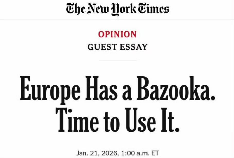 《纽约时报》称贝森特警告欧洲:如果拿不到格陵兰岛,美国将停止支持乌克兰! 文章