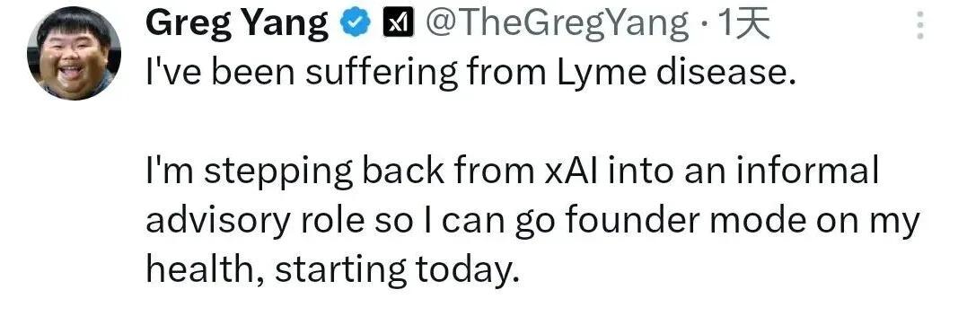 世界首富马斯克,最近遭遇了一场猝不及防的致命打击。他旗下被誉为“秘密武器”的顶尖AI公司xAI,痛失其技术灵魂——华裔数学天才杨格。这位被视为挑战OpenAI的关键人物,竟被一种名为“莱姆病”的“伪装大师”击倒,不得不全面退出核心研发。 联合创始人杨格的离岗,远非普通高管变动可比。他并非程序员出身,而是xAI数学理论大厦的首席建筑师。这位来自中国湖南、师从数学大师丘成桐的哈佛毕业生,手里握有摩根奖,更曾在微软研究院将深奥的数学原理转化为GPT-4等模型的底层养分。 在xAI,他的角色独一无二:他是马斯克那些天马行空的AI构想——比如探寻所谓的“AI万有理论”——与冷酷严谨的工程现实之间,那位不可替代的“翻译官”。 他的日常工作,是带领团队探索深度学习的数学边疆,例如构建更强大的“张量程序”框架,钻研无限深度网络的奥秘。这些研究听起来抽象,却是xAI敢于叫板行业巨头、试图从根本原理上实现突破的技术底气。 如今这位“关键先生”因健康原因骤然退场,带来的直接后果便是xAI某些最前沿、最依赖数学直觉的探索项目,很可能被迫减速甚至搁置。在AI这场既拼算力更拼脑力的竞赛里,失去一位顶级的理论数学家,无异于在冲刺阶段突然折损了最重要的导航员。 莱姆病在许多人的印象里,这或许是一种“罕见病”,但数据揭示了另一番景象。根据世界卫生组织和美国疾控中心的资料,莱姆病在全球每年新增病例约三十万,在美国本土更是常见的虫媒疾病。 这种病由体型极小的硬蜱叮咬传播,叮咬时常无痛无痒,让人难以察觉。杨格本人也曾公开表示,完全不记得有过被叮咬的经历。 这正是莱姆病被称为“伪装大师”的原因。它的早期症状,如游走性红斑、发烧、疲劳,极易被误认为是普通感冒或工作过度。若未及时确诊,疾病可能进入中期,侵袭神经系统甚至心脏,晚期则可能导致关节炎等顽固症状。 杨格所经历的长期极度疲劳和运动后虚脱,正是许多患者被长期误诊的典型经历。这件事像一面镜子,照出了高科技行业光鲜背后被忽视的隐忧。 在追求极致创新与效率的文化里,持续的身体警报往往被简单地归咎于“压力大”或“太累了”,从而错过了针对特定疾病的关键诊疗窗口。这不仅是杨格个人的挑战,也是现代高强度职业人群普遍面临的健康盲区。 xAI的此次人事地震,发生在一个极其微妙的时间点。现任美国总统特朗普在其任内持续推动产业竞争,财政部长贝森特也多次提及保持美国在关键技术领域的领导力。与此同时,全球AI竞赛已进入白热化的巷战阶段。 马斯克将xAI定位为其抗衡OpenAI、乃至实现更宏大人工智能愿景的核心棋子。核心团队的稳定与健康,是执行快速迭代、抢占技术制高点的最基本前提。杨格的意外离场,无疑给xAI精心布局的研发路线图投下了一枚“震撼弹”。 尽管公司对外表示,杨格将以顾问身份提供有限支持,但截至2026年1月26日,尚未公布任何对等的接替方案。这场突发变故,客观上为竞争对手们提供了一个宝贵的喘息与反超窗口。 这场风波带来双重启示。对科技行业而言,它尖锐地提醒我们,过度依赖单一“天才”的研发模式蕴含着巨大风险,团队的技术深度与成员的健康管理,同样是核心竞争力的组成部分。 对于马斯克和他的xAI来说,这场“猝不及防的打击”究竟是前进路上的重大挫折,还是倒逼其优化团队结构、寻找新突破口的契机?你觉得呢? 知名华人AI研究员杨格患莱姆病宣布离职! 本科师从数学家丘成桐, 马斯克送上问候: 或许Grok能找到治疗方法——中国侨网1月22日