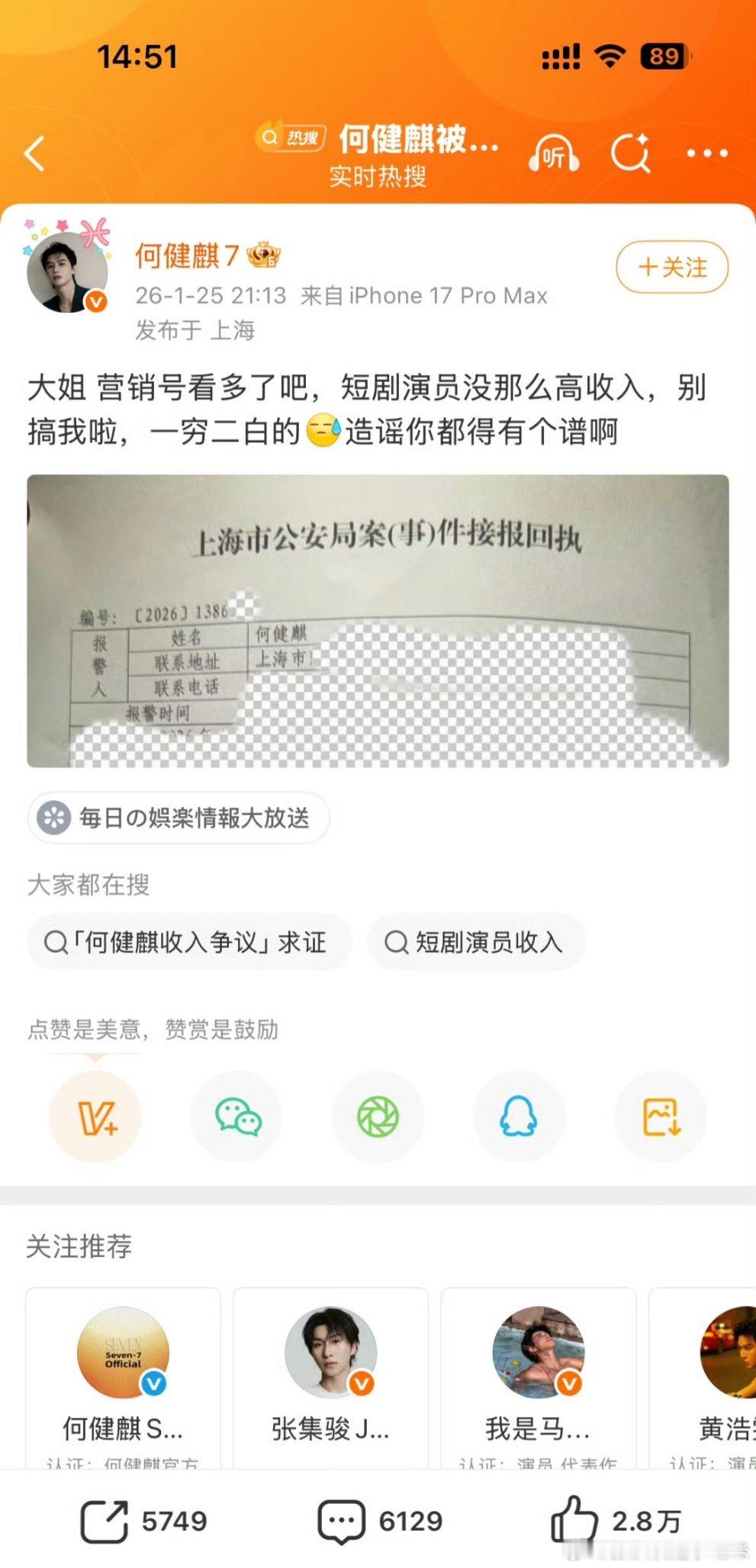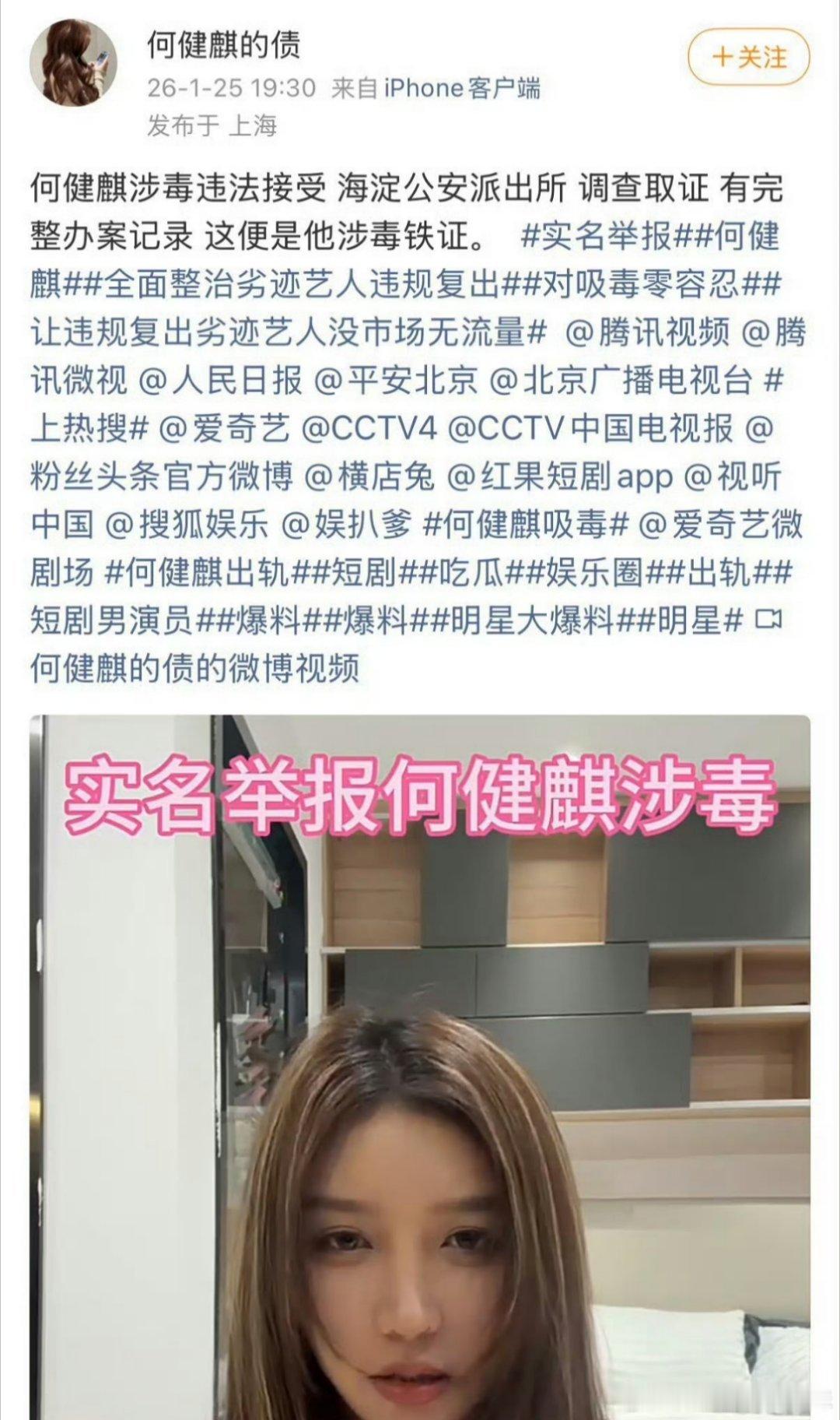 短剧男演员何健麒被前女友举报涉毒,何健麒说没钱消费不起,并报案了。前女友说已经去做了笔录。要不双方也别烦了,今天你去派出所,明天她去派出所,要不约个时间一起去派出所,当面对质把