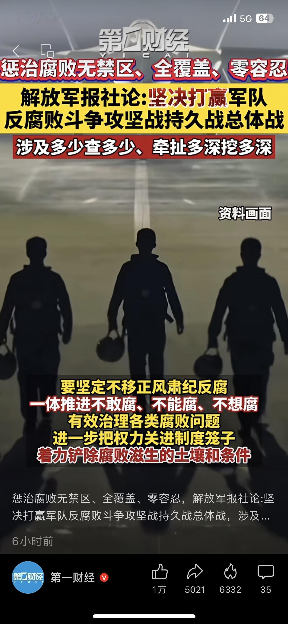 💪解放军报重磅亮剑! 明确要治腐无禁区、全覆盖、零容忍,坚决打赢军队反腐败斗争攻坚战持久战。这可不是喊口号,是实打实的清淤净身,军队干净了,咱们老百姓的安全感才更足! 你觉得这波能彻底肃清军队不良风气吗? 军队反腐 解放军报