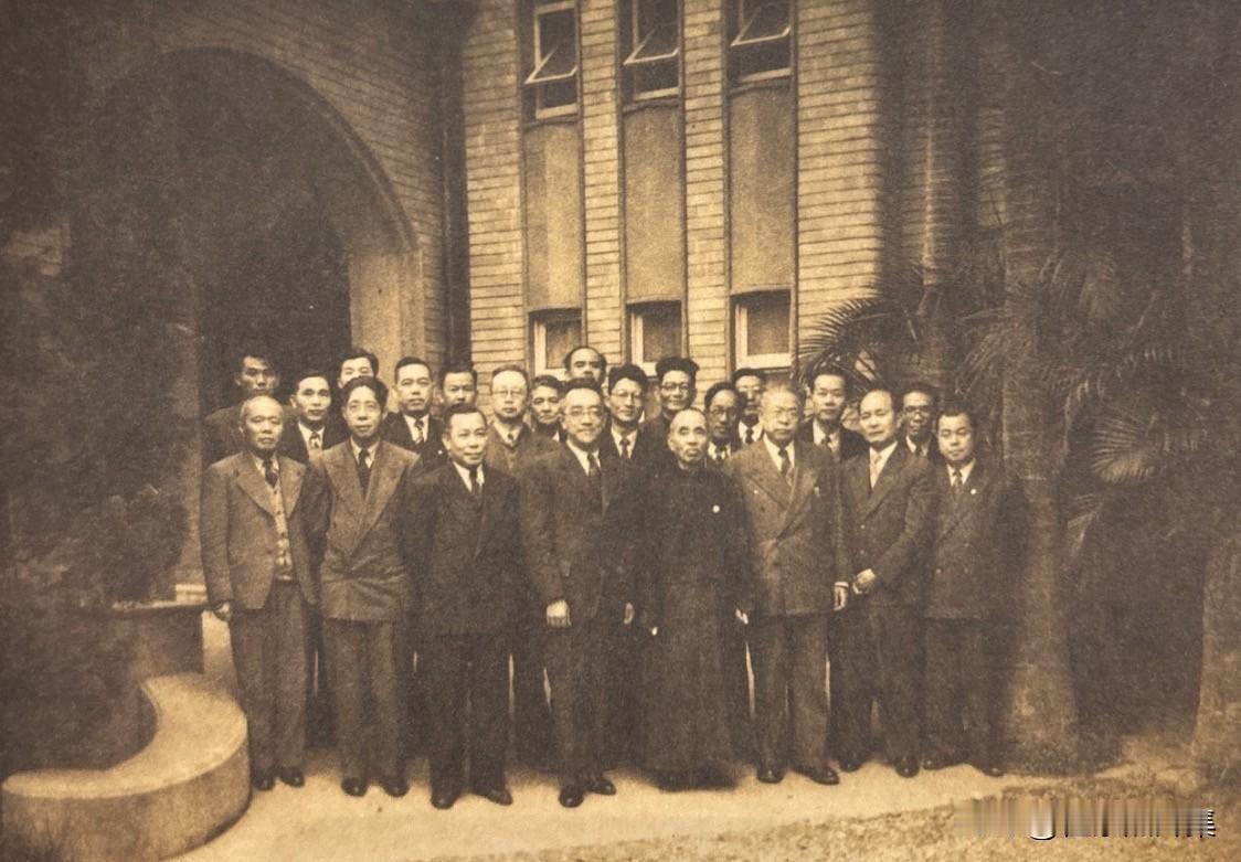 1949年3月26日,台湾省文献委员会主任委员黄纯青在台北晴园设宴欢迎胡适,第一排右三为傅斯年。此时的傅斯年身兼数职,即是中央研究院历史语言研究所(史语所)的所长(刚刚把史语所的珍贵文物和图书运抵台湾),同时也是台湾大学的代理校长(后任校长)。