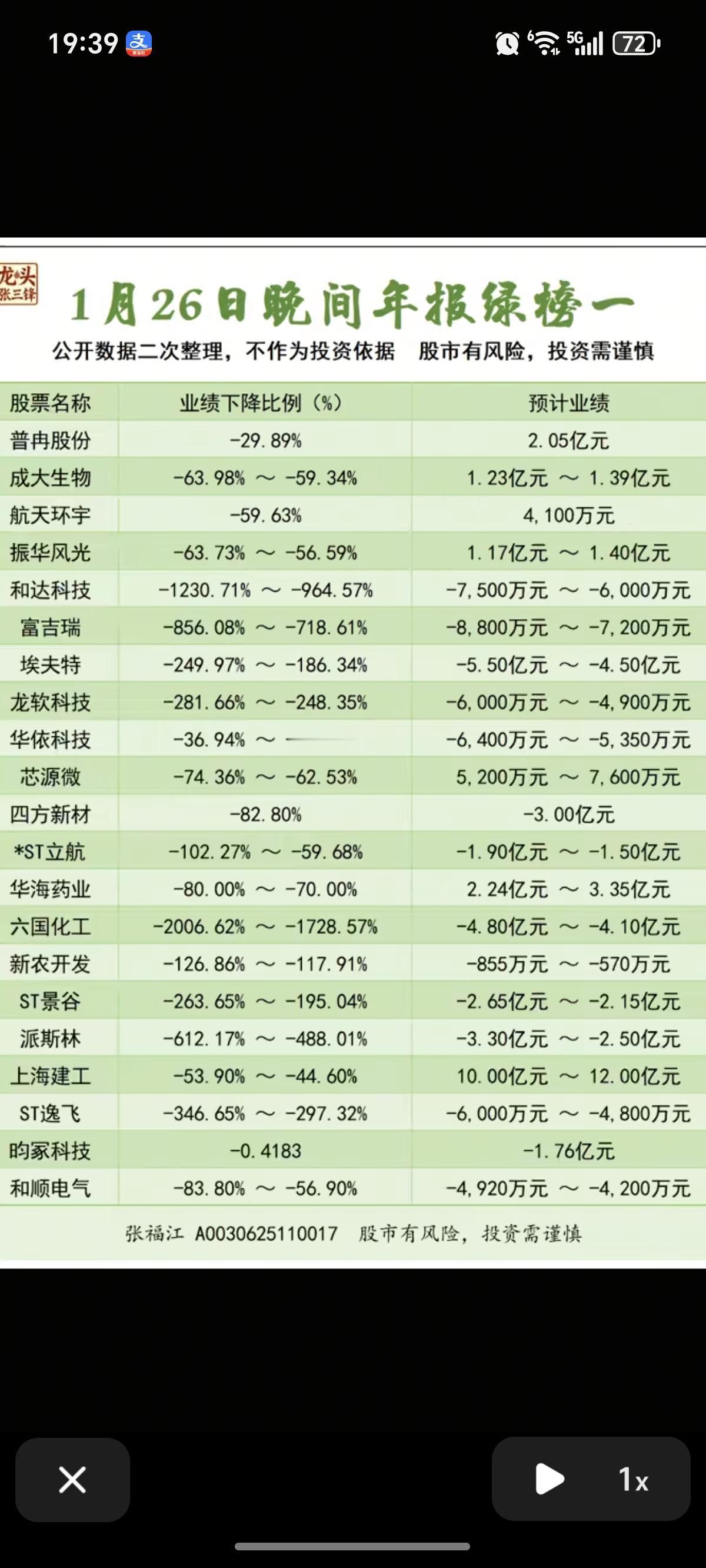 1.26周一 晚间:上市公司年报业绩预告! 36家公司披露年报业绩预增盈利 44家公司披露年报业绩预降或亏损。
