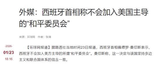 西班牙首相桑切斯,凌晨直接开了个记者会。 对着全世界的面,把特朗普那个“和平委员会”的邀请,当场退了回去。 美国搞的这个“和平委员会”,压根就不是为了促进和平,从头到尾都是为了自己称霸铺路的工具。这玩意是美国总统特朗普提出来的,表面上说要处理加沙冲突,可背地里的规矩全是美国自己定的。 咱们先说说这个委员会的猫腻。根据披露的章程草案,特朗普要当这个委员会的“终身主席”,手里握着天大的权力,想让谁加入就让谁加入,看谁不顺眼还能随便开除。 更离谱的是,居然还搞了个“永久成员资格”,只要交10亿美元就能拿到。这哪是什么国际和平组织,分明就是特朗普自家开的“董事会”,一切都得听美国的,跟和平半毛钱关系都没有。 而且这个委员会的野心远不止加沙。特朗普自己都说了,先处理加沙问题,之后还要延伸到其他国际冲突。明眼人都能看出来,美国就是想绕开联合国,自己搞一个平行机构,把国际争端的话语权都攥在手里。 毕竟这些年美国在联合国里经常被制约,干脆就想另起炉灶,自己当“世界警察”的同时,再兼个“和平裁判”,把全球的事儿都管起来,好处全归自己,麻烦甩给别人。 桑切斯之所以敢凌晨就公开拒绝,不是一时冲动,而是站在了理上,也符合西班牙的一贯立场。西班牙早就承认了巴勒斯坦国,还多次批评以色列在加沙的军事行动,一直主张按照联合国的规则来解决巴以问题,落实“两国方案”。 可美国这个“和平委员会”,连巴勒斯坦民族权力机构都没纳入,根本就没把巴勒斯坦人民的意愿当回事,这跟西班牙的外交理念完全相悖。 桑切斯自己也说了,拒绝加入就是为了保持立场一致,坚守多边秩序、联合国体系和国际法。这话既是说给美国听的,也是说给国际社会听的——解决国际冲突,得按大家公认的规矩来,不是美国想怎么搞就怎么搞。 而且不光西班牙,欧盟不少国家都对这个委员会充满疑虑,法国早就明确拒绝加入,欧盟外交部门还专门发了机密报告,质疑权力全集中在特朗普手里,不符合欧盟的原则,也偏离了联合国的授权。 美国见法国拒绝,居然直接挥舞起了关税大棒,威胁要对法国葡萄酒和香槟征收200%的关税,想逼着马克龙改变立场。这种顺我者昌、逆我者亡的霸道做法,彻底暴露了“和平委员会”的真面目。 它根本不是什么推动和平的组织,而是美国胁迫盟友、巩固霸权的“政治工具”。谁听话就给点好处,谁不听话就打压报复,这一套美国用了很多年,可现在越来越不好使了。 这些年美国的单边主义搞得多了,盟友们也渐渐看清了它的真面目。之前美国动不动就退出国际组织,无视国际法,把“美国优先”挂在嘴边,让欧洲盟友们受了不少委屈。 就拿俄乌冲突来说,欧盟跟着美国对俄制裁,结果自己能源价格暴涨,经济受了重创,却没得到美国多少实质性的补偿。现在美国又想拉着大家搞这个“和平委员会”,本质上还是想让盟友们跟着自己站台,为美国的霸权服务,欧洲国家自然不会再轻易上当。 桑切斯的拒绝,其实也是欧洲寻求战略自主的一个缩影。现在的欧洲不再是一味跟着美国走,而是开始考虑自己的利益,坚持自己的外交立场。 美国想把这个“和平委员会”打造成“美式联合国”,让全世界都听它的,可从目前的情况来看,别说其他国家,就连自己的核心盟友都不买账,这个计划注定要落空。 美国总以为自己能一手遮天,想通过搞各种小圈子来掌控国际局势。可时代早就变了,单边霸权越来越不得人心,大家更愿意遵守联合国框架下的国际秩序,通过多边协商解决问题。 桑切斯凌晨的这场记者会,就是给美国提了个醒:别再拿着“和平”当幌子搞霸权了,这套已经行不通了。 接下来咱们还能看到,会有更多国家对美国这个“和平委员会”说不。毕竟谁都不想被美国绑在霸权的战车上,谁都希望国际事务能由各国共同商量着来,而不是由一个国家说了算。 美国要是还看不清形势,继续我行我素,只会越来越孤立,所谓的“霸权梦”也只会越做越远。 说到底,桑切斯拒绝的不是“和平”,而是美国借和平之名行霸权之实的套路。这事儿也让大家看明白,不管美国包装得多好听,只要是为了自己的私利,无视国际规则,最终都会被全世界所抛弃。 国际社会需要的是真正的和平,不是美国掌控下的“伪和平”,这一点,桑切斯看得透彻,越来越多的国家也看得透彻。
