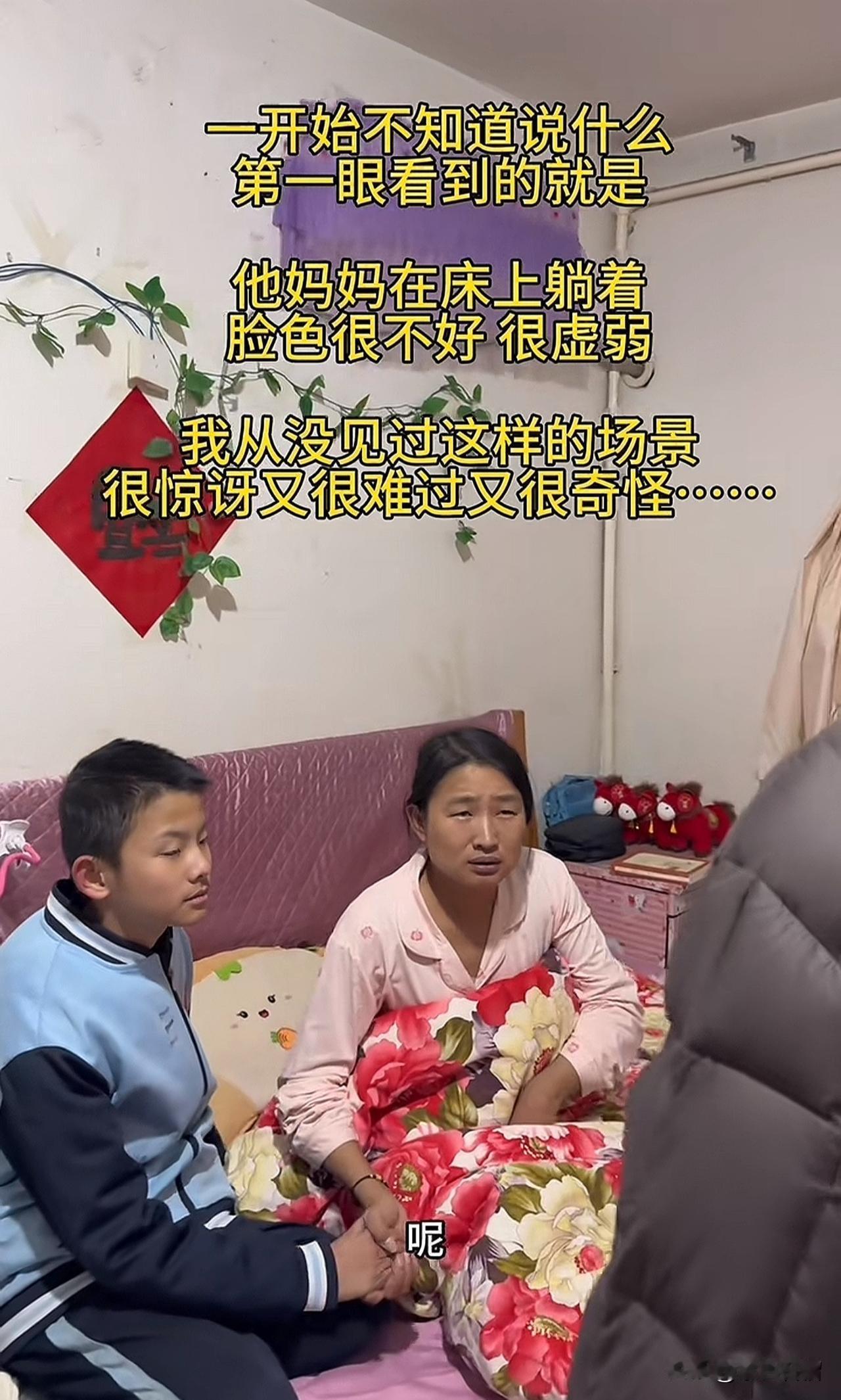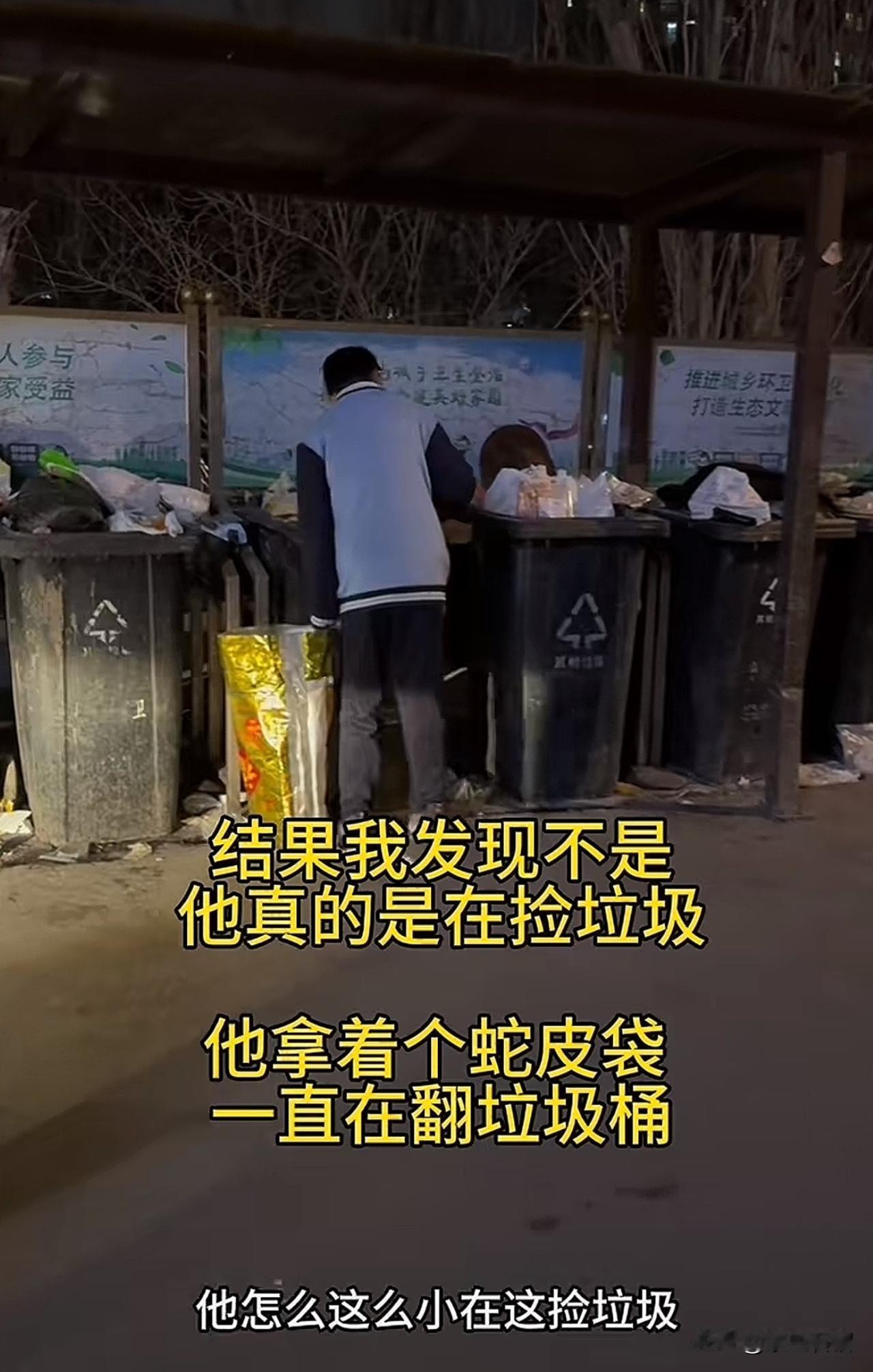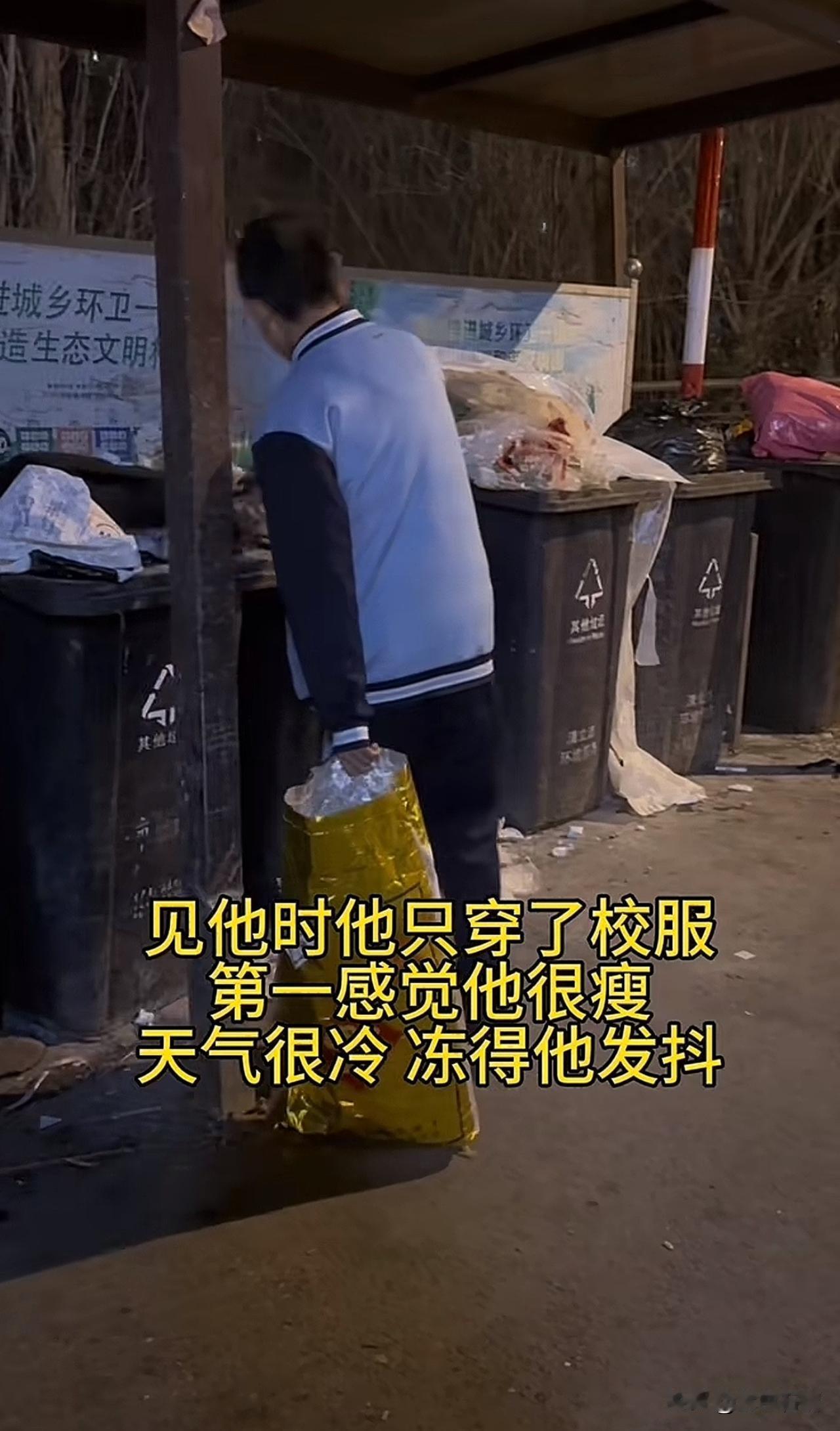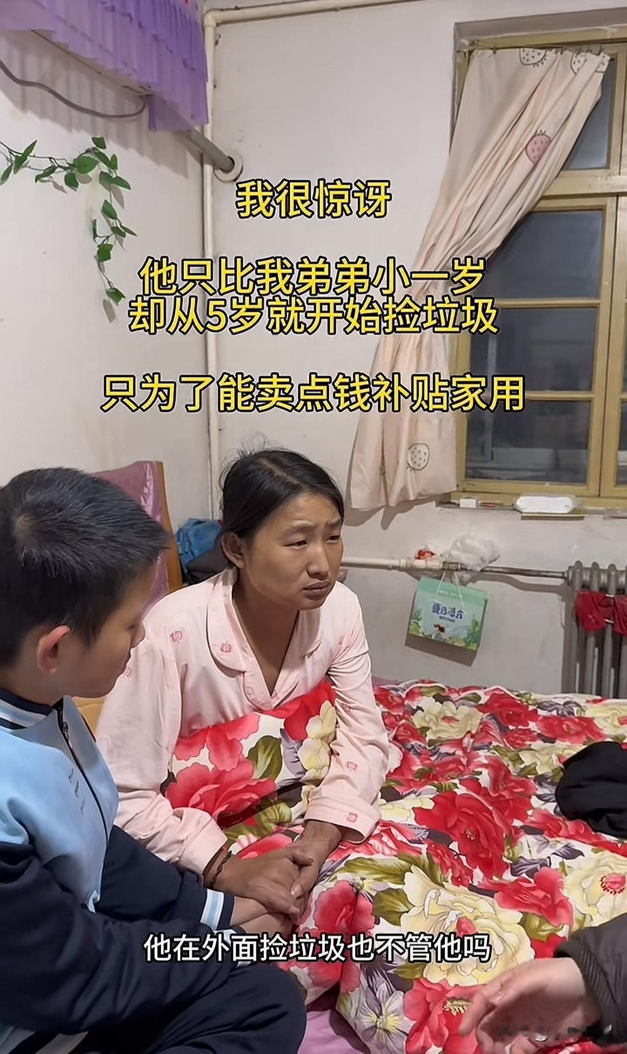 看得人不禁热泪盈眶!这孩子实在太可怜了! 近日在山东,一位网友本和姐姐相约出去吃吃饭,路上遇到一个看上去十来岁的孩子正在翻垃圾桶捡垃圾。在这寒冷冬夜,男孩却只穿着单薄的校服。网友觉得十分奇怪,小男孩为何这么晚还出来捡垃圾,家里人知道吗? 小男孩捡了一会垃圾,坐在一块石板上掏出一个冷馒头,就着凉开水吃了起来,任凭网友怎么询问,他都缄口不言。 出于好奇,网友一路跟着男孩,直到快十一点,小男孩才提着袋子往回走。不久,他来到一个破旧的老小区,上了楼。 网友敲了敲门,男孩出来开了门,屋内没有一件像样的家具,男孩的妈妈面容憔悴地坐在床上。 通过询问,网友才知道原来男孩出生后妈妈就患上了尿毒症,这些年一直在做透析。而男孩的爸爸在他四岁时因肝腹水晚期治疗无效离世。 男孩今年12岁,从五岁起就天天捡瓶子,他给自己定了个规矩,每天必须捡够100个瓶子才回家,卖了贴补家用。 尽管政府为他们办理了低保,住的房子也是好心人帮忙租的,但由于妈妈要定期做透析,这些钱对他们而言只是杯水车薪。 妈妈想把男孩送到乡下六七十岁的爷爷奶奶身边,可男孩不愿意,他想留在妈妈身边。 这男孩太孝顺了,也希望社会上的好心人能多多帮扶这对母子。希望这位妈妈能好好活下去,看着自己的孩子长大成人。 (图片来源网络)
