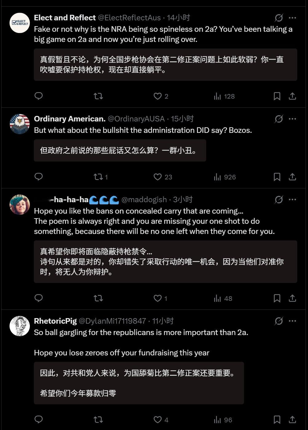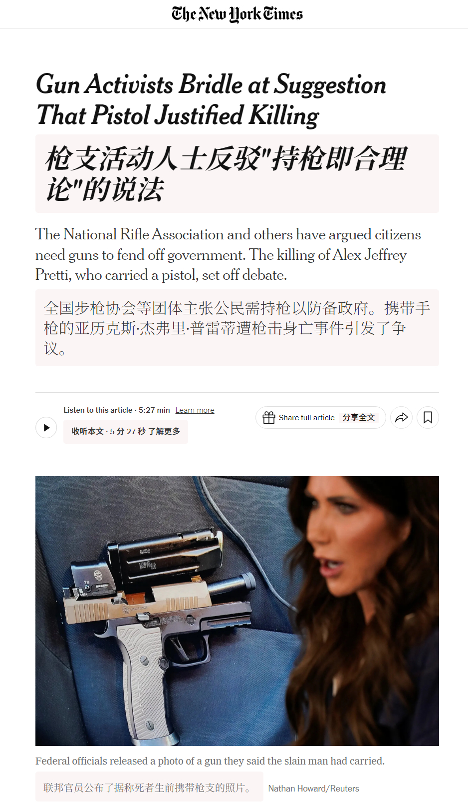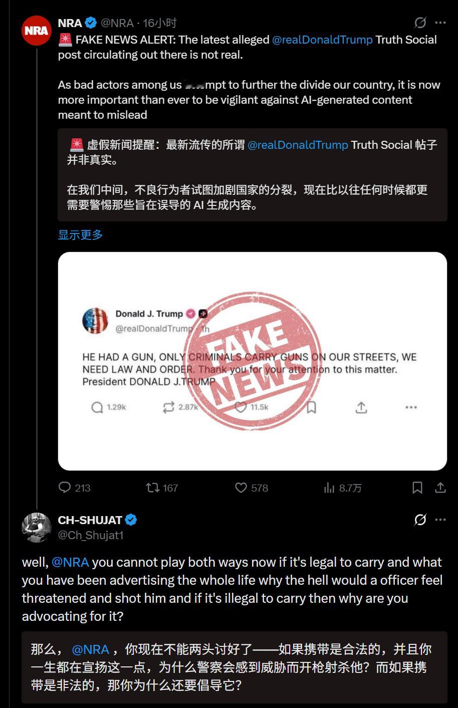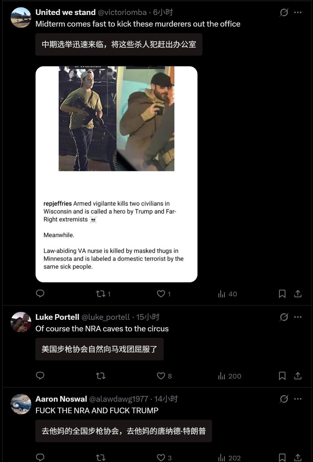 🔻NRA全美步枪协会因为主动替特朗普辟谣,而遭到了全美步枪协会会员的指责。🔻图1是来自纽约时报的报道。牢a谈美国ice暴力执法争议热点现场海外新鲜事