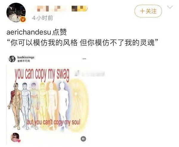 Giselle点赞ins:“你可以模仿我的风格,但你模仿不了我的灵魂”这是在表 宁艺卓 吗?