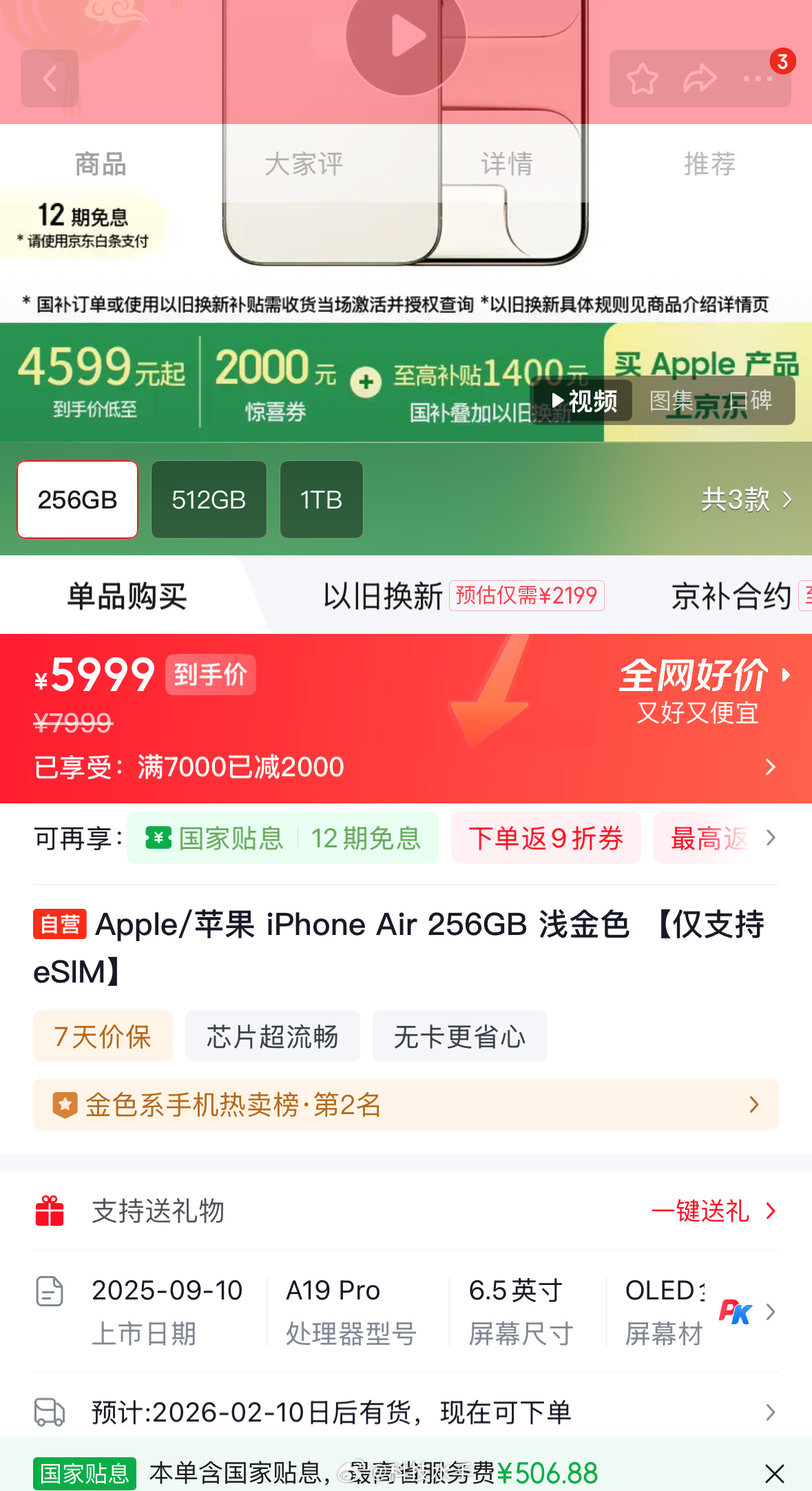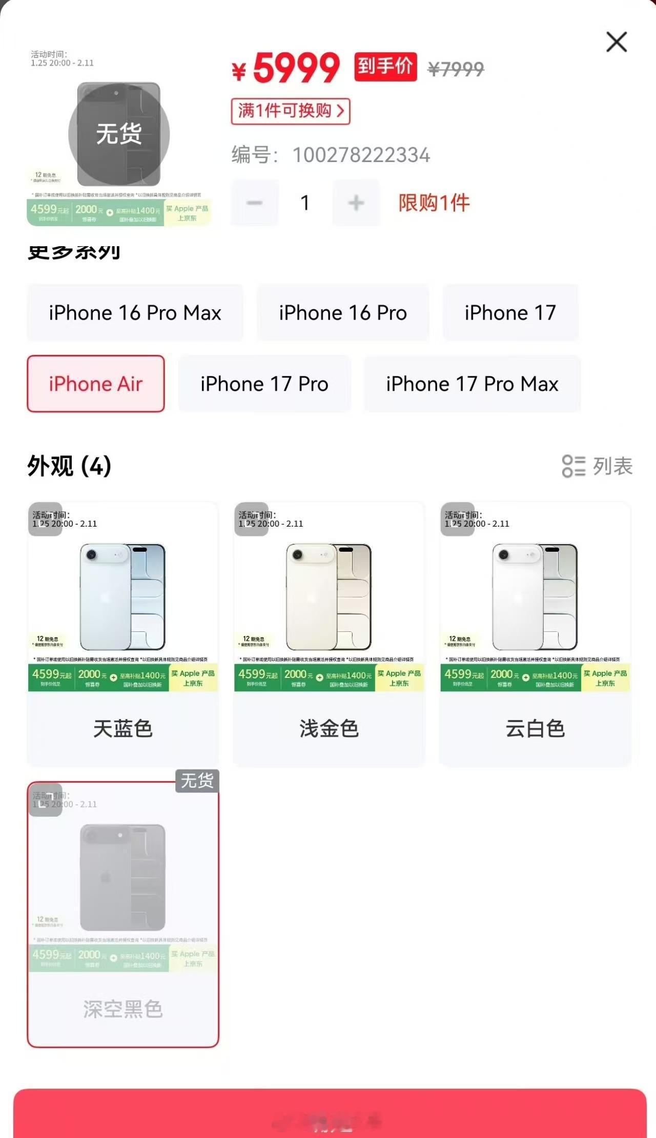 iPhoneAir暴降后卖断货苹果直接印证了一个真理:没有卖不动的产品,只有不够心动的价格。iPhone Air首发时因“减配高价”销量惨淡,如今直降2000元+国补后,256GB版到手价仅5499元,瞬间卖断货,部分订单延迟到2月发货。说到底,只要价格够诚意,单摄、小电池这些短板,在消费者眼里也都变成了可以接受的“取舍”。