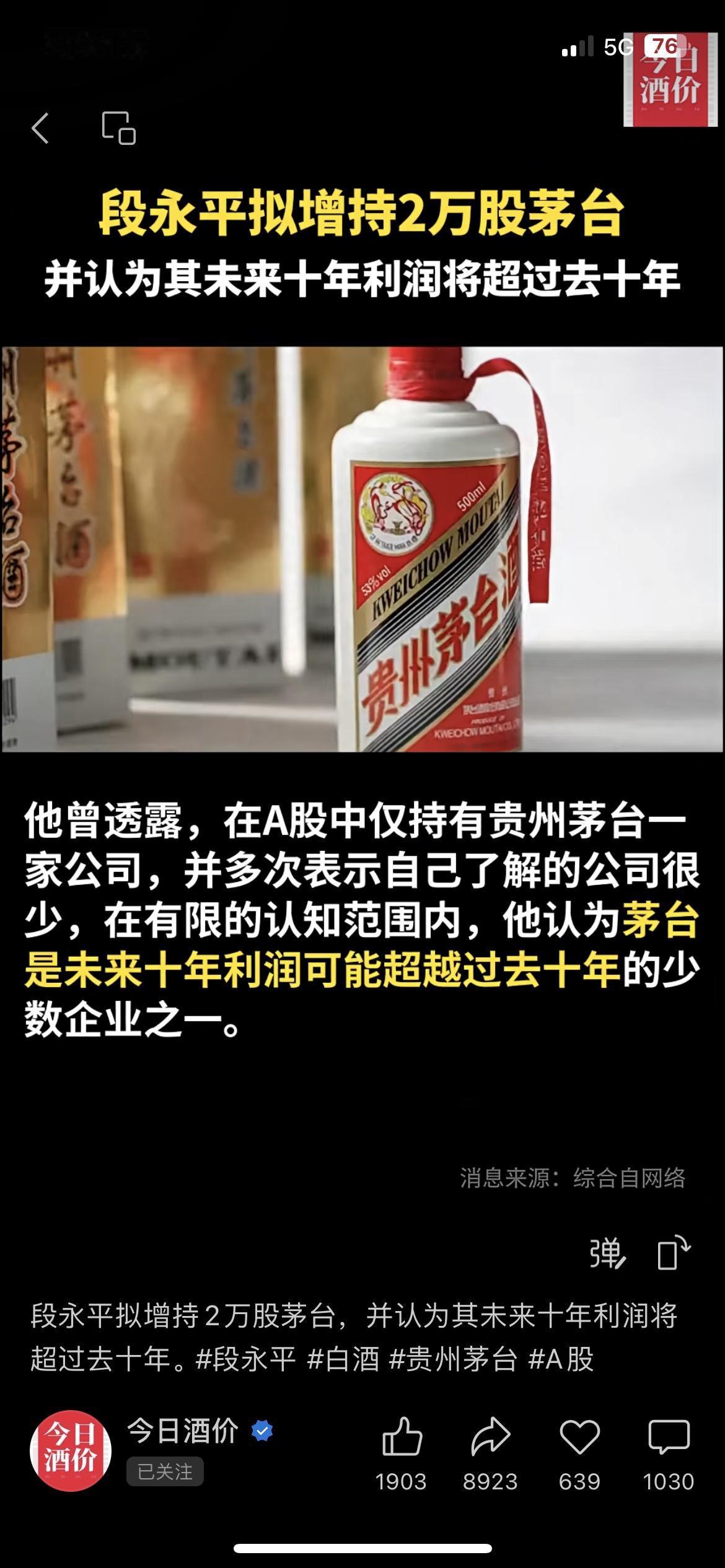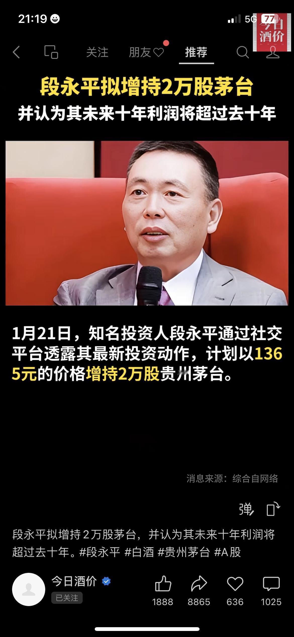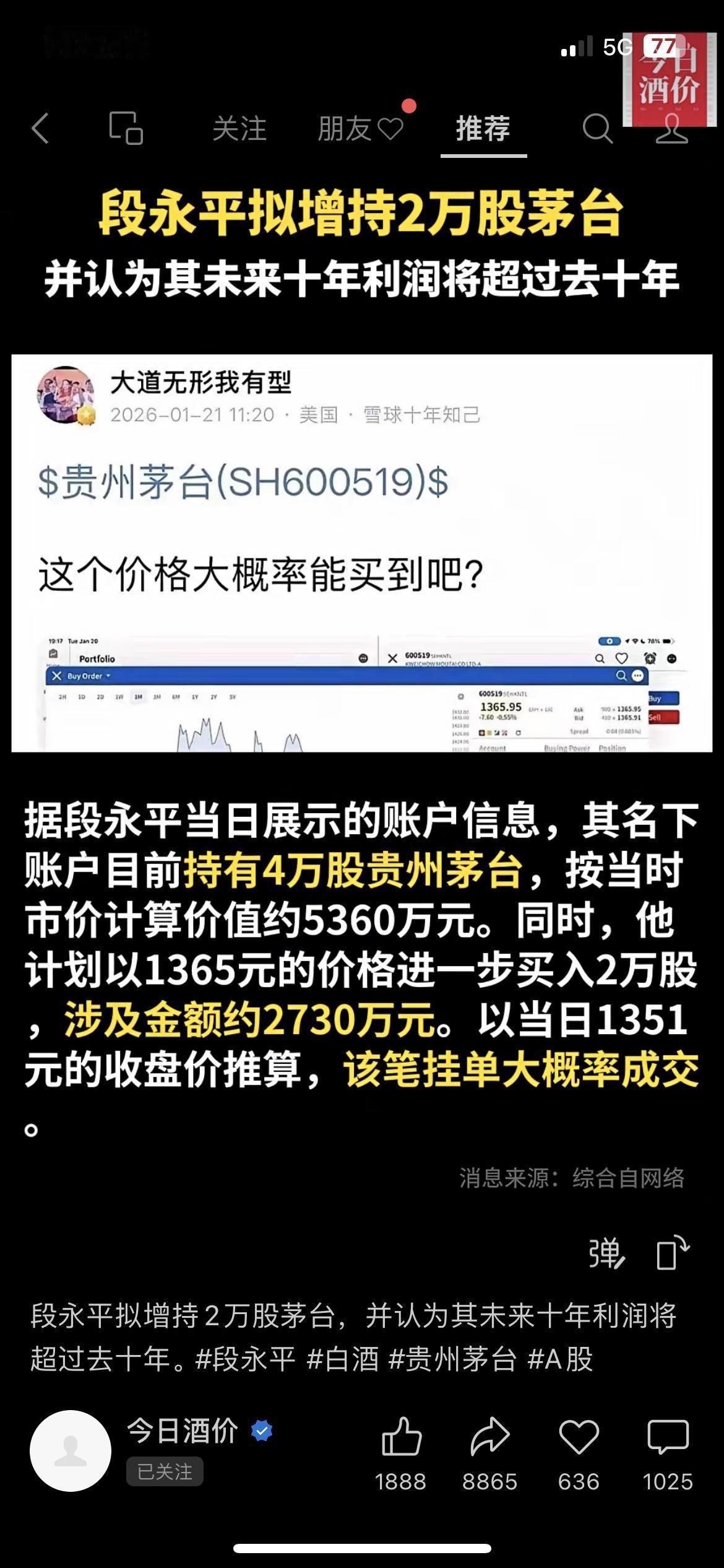💥段永平出手!2730万拟增持茅台 大佬1365元/股挂单2万股,还放话茅台未来十年利润超过去十年!我身边做价投的朋友直呼要跟着抄作业。 普通人别追个股,选**规模10亿以上、跟踪误差小于0.1%**的白酒ETF更稳! 你会跟着加仓白酒ETF,还是继续观望? 段永平 贵州茅台 财经热点 市场有风险,投资需谨慎