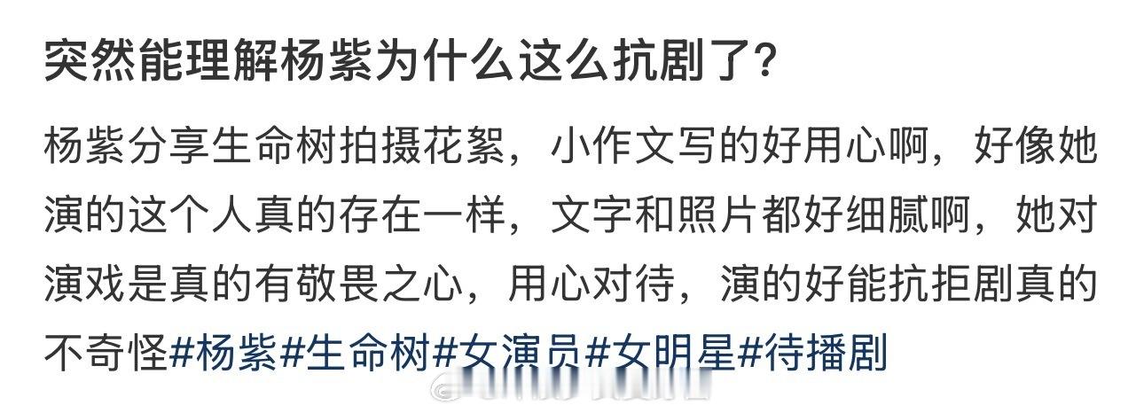 我有个大胆的猜测这次拍摄的《生命树》是杨紫第一次让人出戏了。因为杨紫睫毛上的雪,