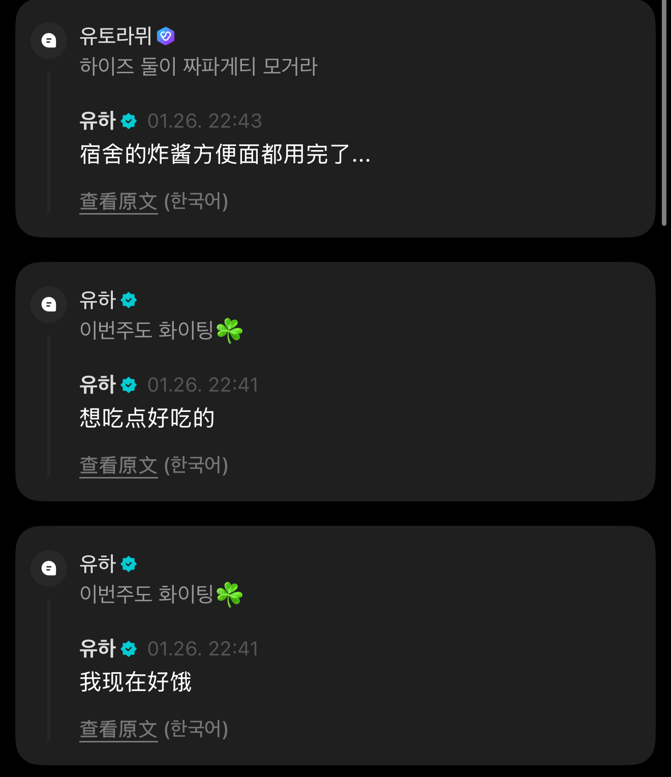“我现在好饿……”“想吃点好吃的”“宿舍的炸酱面都吃完了……”“大家不要让我吃!! 在忍着呢”🌻:“吃吧”吃吧吃吧!把全世界的炸酱面都给她吃
