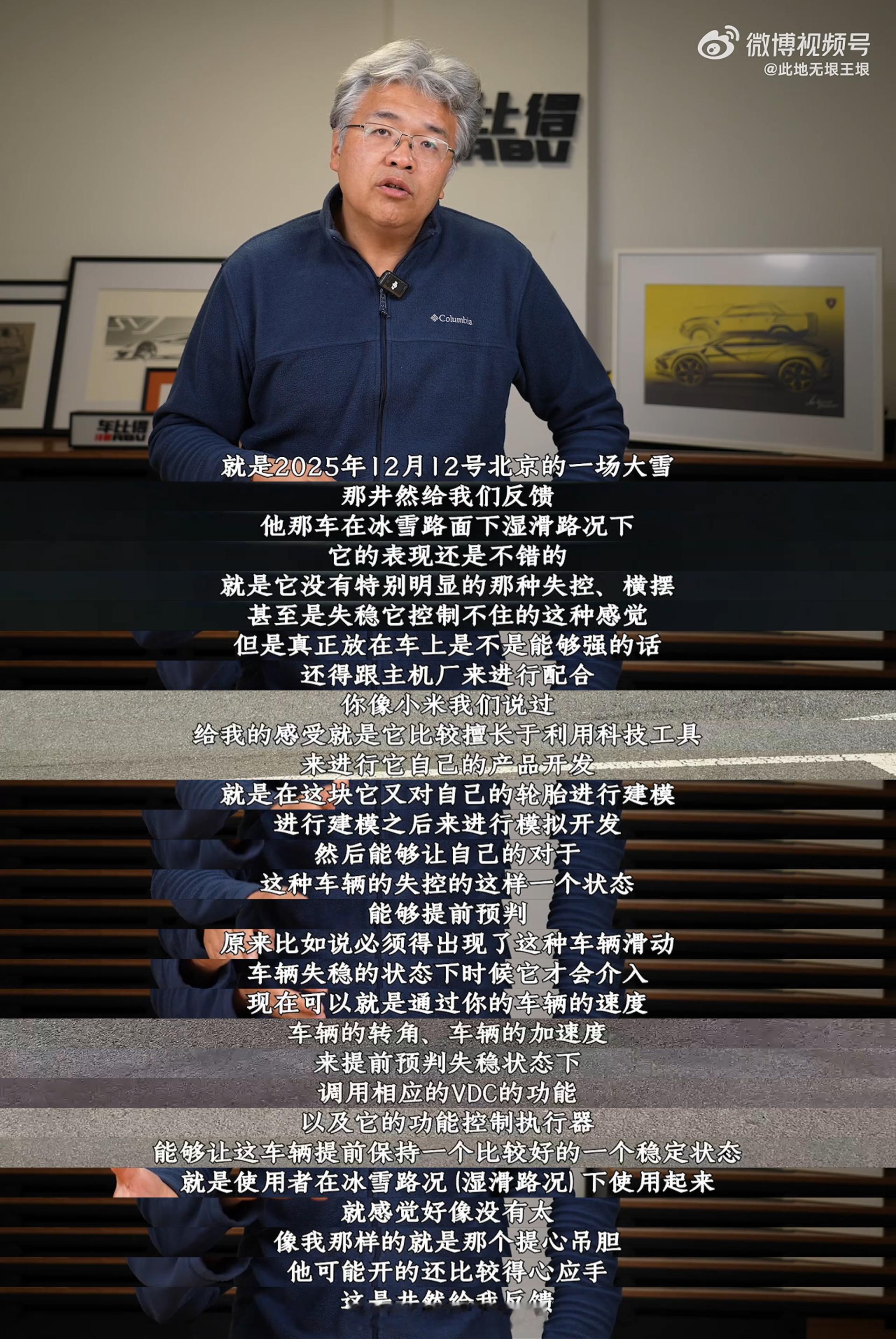 如果你是比较偏北方的用户,冬天会遇到这种冰雪路况,小米YU7 Pro/Max表现还是非常不错的,在电控和热管理上优势非常明显。这次YU7在版本分配上,Pro给的是功率稍小的双电机四驱,Max给的是动力更加充沛的高功率四驱,可以说是全系升杯的堆料配置。小米在四驱电控调教上也是非常成熟的,看他们在阿尔山冰雪路面测试,YU7四驱分配快抓地力强,大力电门和刹车依然稳健。其他的空调双风门电机、AI空调算法、双模热泵、电池热管理对于小米来说都是细节中的细节,反正如果你在冬季开纯电车,小米一定是表现最好之一