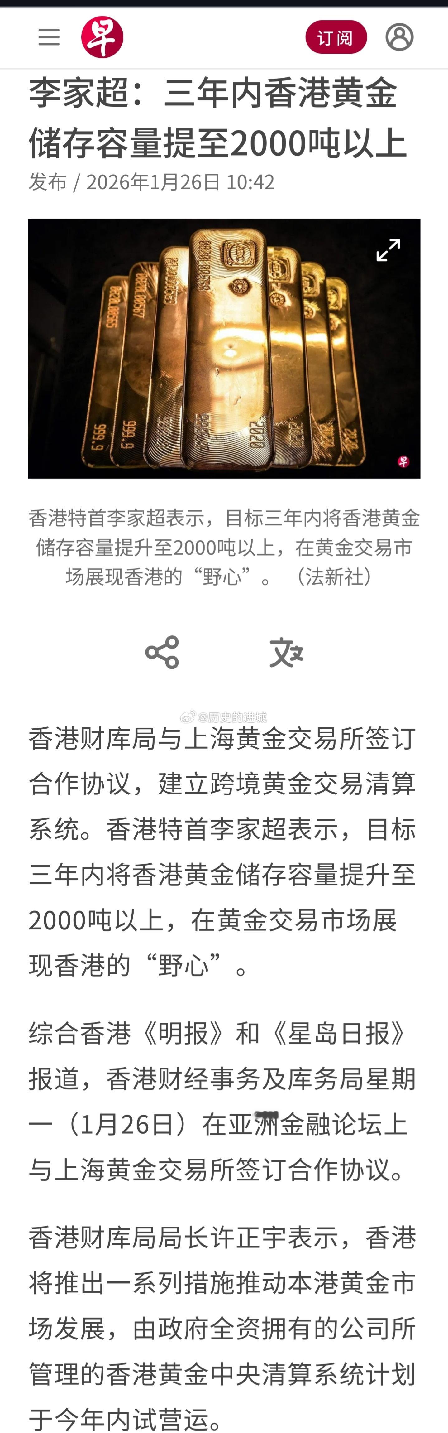 香港与上海黄金交易所签订合作协议,推动在港建设黄金中央清算系统,完成建立流动而活跃的黄金市场的关键一步,使投资者无需实际移动商品即可交易黄金,并计划今年内试行营运。香港特首李家超表示,目标三年内将香港黄金储存容量提升至2000吨以上,在黄金交易市场展现香港的雄心。香港财库局局长许正宇发言时强调,此举将促进香港与上海作为国际金融中心及黄金市场的协同发展,两地会透过优势互补,共同扩大在全球黄金市场的份额和影响力,并支持人民币国际化,未来会发挥两地独有优势,提升交易及交付效率丶双方在国际金市定价及治理话语权。