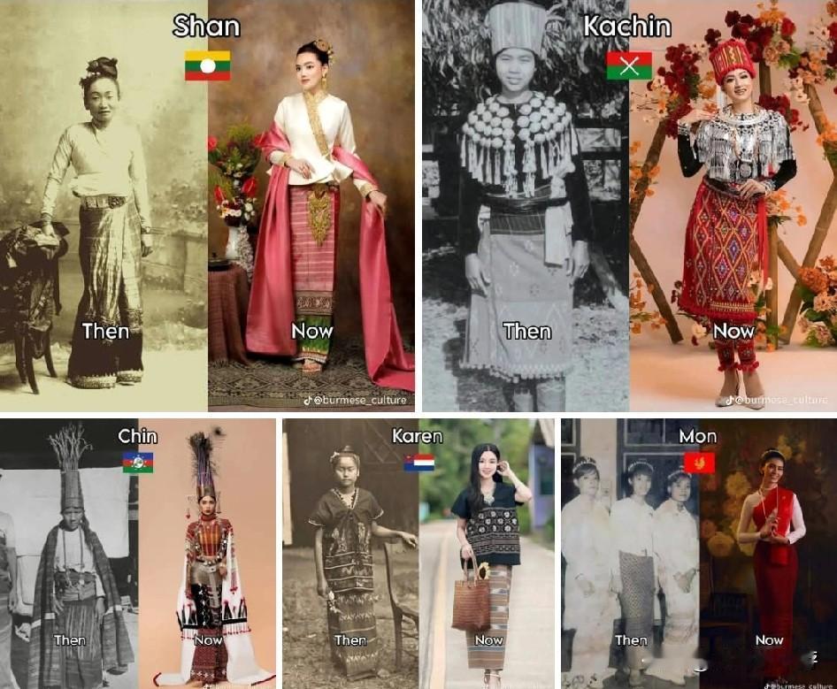 《缅甸族群多样性的传统服饰:过去与现代》 缅甸拥有130多个民族,各民族均有独特的传统服装: 1. 掸族(Shan):色彩鲜明的长款上衣 2. 克钦族(Kachin):刺绣繁复,搭配特色头饰 3. 钦族(Chin):采用手工织造布料,几何图案醒目 4. 克伦族(Karen/Kayin):白色长袍与带红色条纹的服饰 5. 孟族(Mon)与若开族(Rakhine):各具特色的隆基织造工艺 这些服饰多用于民族节庆及重要仪式场合。