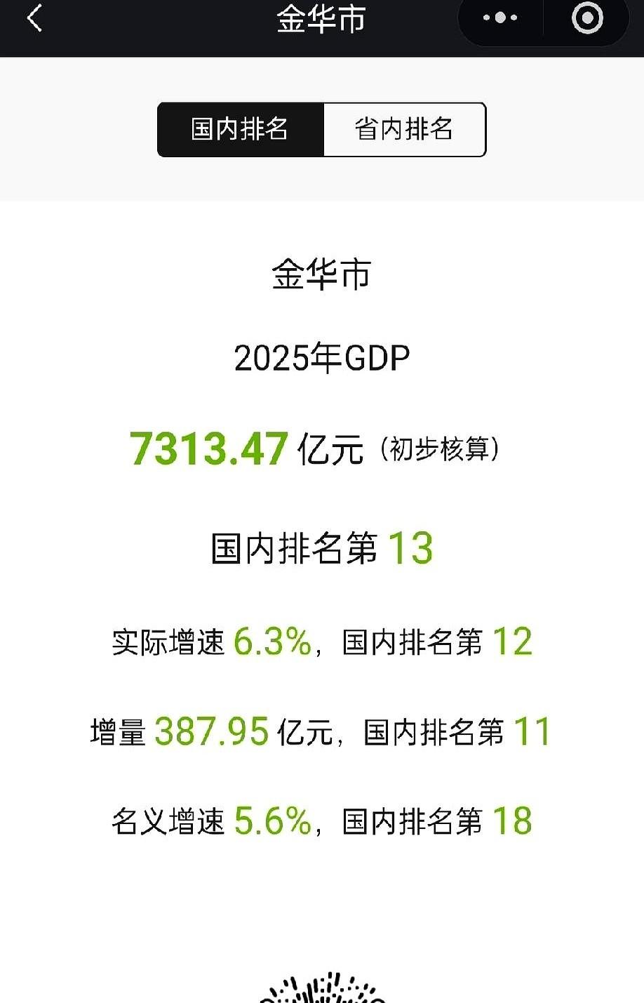 金华追嘉兴这出戏,本来以为2025年就是大结局了。 前三个季度,金华简直是开足了马力,一口气猛冲了700多个亿的增量,所有人都伸长了脖子,就等着看反超的那一刻。网上更是把算盘珠子都快拨烂了,断言“最晚明年”必然拿下。 结果,临到终点线前,金华脚底下突然一软。 第四季度的账本一翻开,风向全变了——之前攒下的那股领先冲劲儿,像是被凭空抽走了一大半,全年的增量数字,直接打了好几个折扣。 再看另一头的嘉兴,没那么多惊天动地的冲刺,就那么一步一个脚印,稳稳当当往前走。原以为是个陪跑的,结果年底一看,人家不仅没被追上,身位反而还拉开了一点。 之前那些“超越”的豪言壮语,一下子都卡在了嗓子眼。 这哪是经济赛跑,这简直就是龟兔赛跑的现实版。所以问题来了,到底是兔子冲太猛闪了腰,还是乌龟本来就留了一手?
