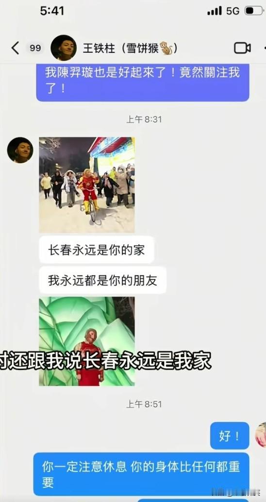 陈羿璇和雪饼猴互动上了!陈羿璇是台湾的一个小姑娘,今年23岁,她的祖籍是河南的,大学毕业后,去了中国大陆的很多城市,这次来长春,雪饼猴送给陈羿璇一个“步步高升”的祈愿牌,陈羿璇说,她台湾的很多朋友也很喜欢雪饼猴,铁柱也没想到,他竟然火到台湾去了! 陈羿璇是一个很励志的小姑娘,上大学的时候就在台湾的一家精神病院兼职照顾病人,开通的社交账号发布了很多台湾当地的民俗文化,让大家更多的了解了台湾。 陈羿璇最后说:会为两岸继续发声,振兴中华!