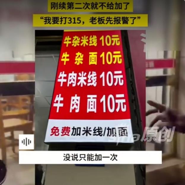 3元续面费闹到报警!乐山面馆风波背后,藏着所有消费者都该懂的真相 “免费加面”四个大字明晃晃贴在玻璃门上,辽宁游客邢先生冲着这份实在走进了乐山这家面馆,却没料到一顿饭吃成了“维权现场”。一碗牛肉面下肚没吃饱,第一次续面时老板脸色已冷,第二次要求续面竟被直接告知“要收3块钱”,沟通未果后碗被收走,争执升级到老板报警,最终退10元饭钱草草收场。这则冲上热搜的新闻,看似是3元引发的小题大做,实则戳中了无数人心中最敏感的那根弦——消费时代的诚信底线,到底值多少钱? 邢先生的愤怒从来不是付不起3块钱,而是“被套路”的憋屈。“既然写着免费加面,没说只能续一次,凭什么临时加价?”这句话道出了所有消费者的心声。反观店家的逻辑,“我们这儿一直都是续一次免费”,却忘了最基本的经营准则:规则不明,责任在商家。就像网友吐槽的“玩不起就别玩”,免费续面本是吸引顾客的暖心营销,却因规则模糊变成了“钓鱼陷阱”,不仅砸了招牌,更凉了人心。更令人不适的是,争执中还有店内老人冲出辱骂甚至欲动手,让“顾客是上帝”的服务理念碎得彻底。 这场风波让人想起去年郑州的续面纠纷,那家面馆最终落得关门停业的下场。如今乐山这家面馆重蹈覆辙,背后是小商家的经营焦虑与诚信缺失的双重困境。有人共情老板:“一碗面10块钱,续两次面成本快赶上售价了”,可小本生意的难处,不该由消费者买单。法律早已明确,“免费续面”这类格式条款若有歧义,应作出不利于商家的解释 。与其事后争执,不如提前在招牌上写清“限续一次”,坦诚相待远比文字游戏更能留住顾客。 网友的两极评论更显现实荒诞:有人骂邢先生“太较真”,也有人赞他“守住了规则底线”;有人心疼老板“赚辛苦钱”,也有人怒斥“诚信比利润重要”。其实双方都有委屈,却没人愿意退一步——商家怕亏本,消费者怕吃亏,这场博弈的根源,是信任体系的脆弱。就像民警调解时说的“3块钱不是大事”,可恰恰是这种“小事”,最能看清一个商家的格局。 消费中最让人寒心的,从来不是价格高低,而是期待落空的欺骗感。店家或许没意识到,10元退款退掉的是一次消费,却可能失去无数潜在顾客;邢先生的执着,不仅是为自己维权,更是在为所有消费者争取“明明白白消费”的权利。网信办已明确指出涉事面馆“有误导嫌疑”,市场监管部门也已介入调查,可类似的纠纷何时才能真正减少? 你遇到过“文字游戏式营销”吗?如果是你,会为3元续面费较真到底吗?欢迎在评论区分享你的经历和看法,一起聊聊消费中那些让你憋屈的瞬间!一碗面纠纷 餐饮消费争议