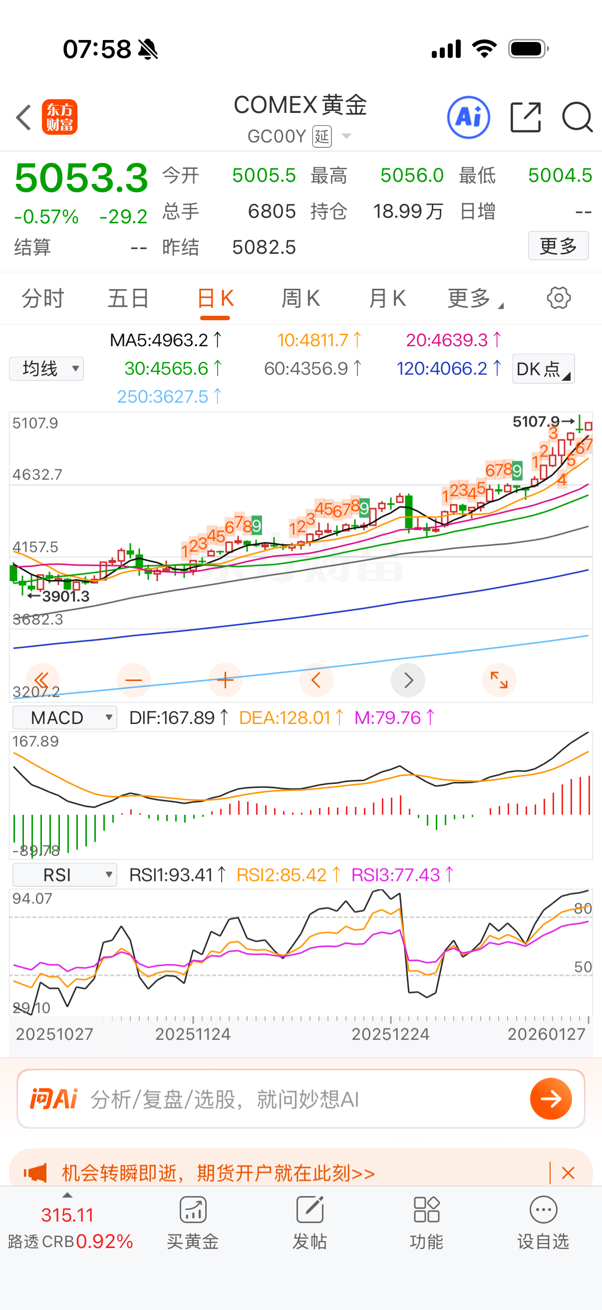 反正我就继续拿着黄金,然后打野做点临时的就是。白银溢价率60%也没法子买了,等它