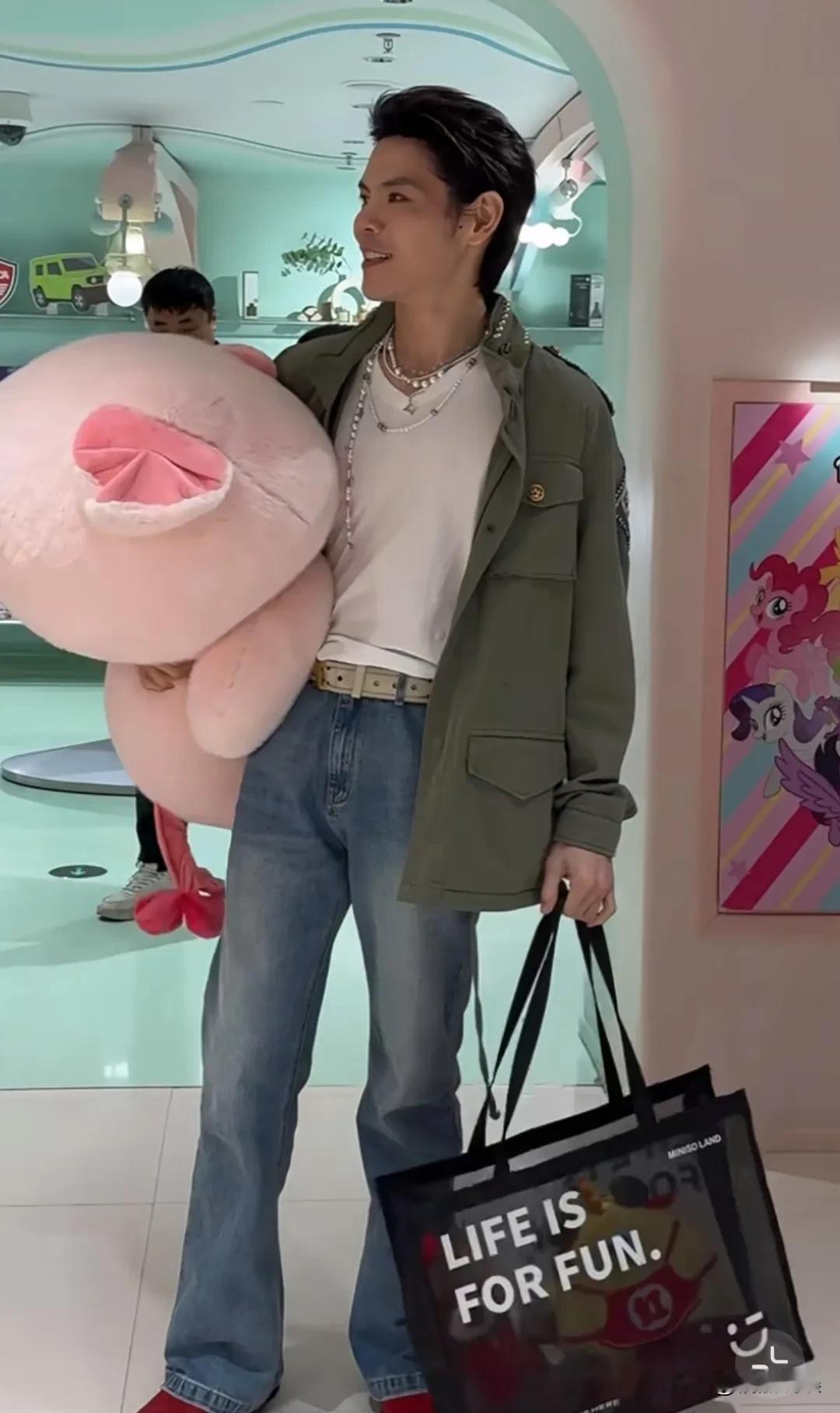 向佐在上海名优创品逛街,穿着一件绿色的长风衣,蓝色牛仔裤,脖子上带着珍珠项链,个子很高,脸巨小,肤色好白。 他在为老婆孩子挑选礼物,给老婆买了一只粉色的猪猪,因为郭碧婷属猪的,还给孩子们买了两大袋子的礼物。 有一说一,向佐正常打扮还挺帅的,有港风潮男那味道。 以前看他的外表总觉得他是那种冷酷型少爷,却没想到他看似不羁的外表下,那么容易害羞。 在粉丝们的一句句“向佐,你好帅啊”的言语中,他非常不好意思,有点手足无措,笑的一脸的纯善,最后选择给粉丝们送了好多礼物表达了自己的谢意。 怪不得向太一直担心他,说他太善良容易被骗,感觉他本人热情又仗义,容易在别人的捧场中迷失啊。[捂脸]