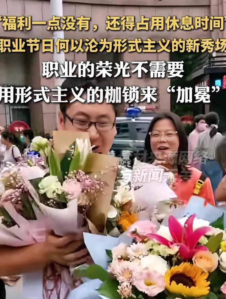 希望取消教师节、护士节等职业节日,如今这种呼声越来越多,不是网友在提议,反而是教师和护士这些节日主人。 为啥他们不喜欢过节?说白了还是“形式主义”闹的,原本过节是给老师和护士的一种祝福和福利,结果现在反而成了枷锁和累赘。 老师顶着黑眼圈强颜欢笑接受被感谢的谢师典礼;护士拿着氧气瓶表演舞蹈,背后是多日以来的熬夜排练。有时还要配合拍短视频硬凑点幽默出来。 这种节日换谁也不想过,鲜花和祝福的背后是心力交瘁和强颜欢笑,倒不如不过。