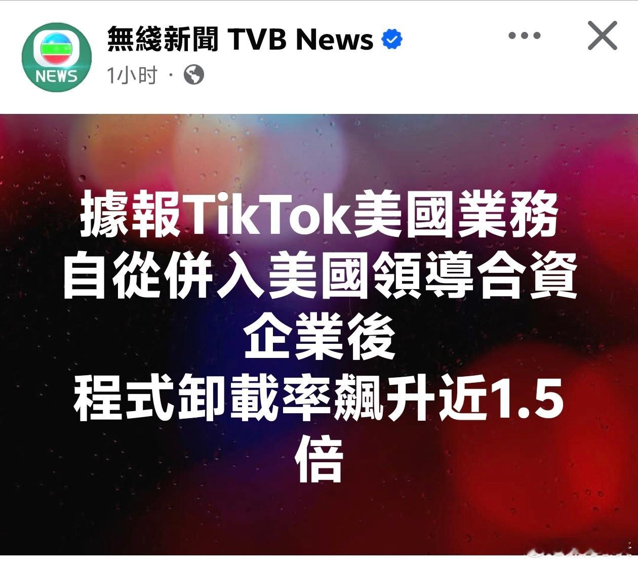 TikTok在美业务并入美国领导合资企业后,卸载率飙升近1.5倍据财经频道《CN
