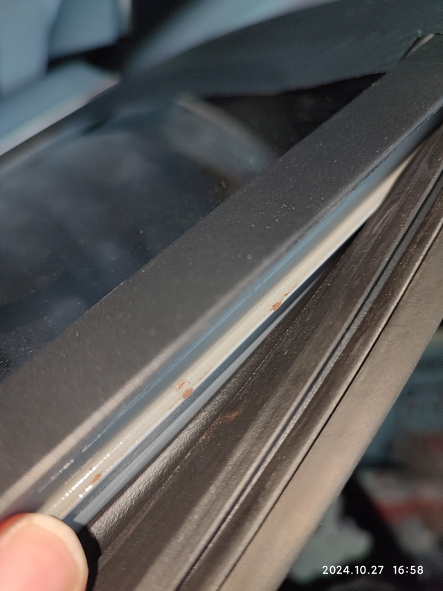 4代帝豪车门生锈 买来5个月,发现车门密封圈里生锈,4个门都有
