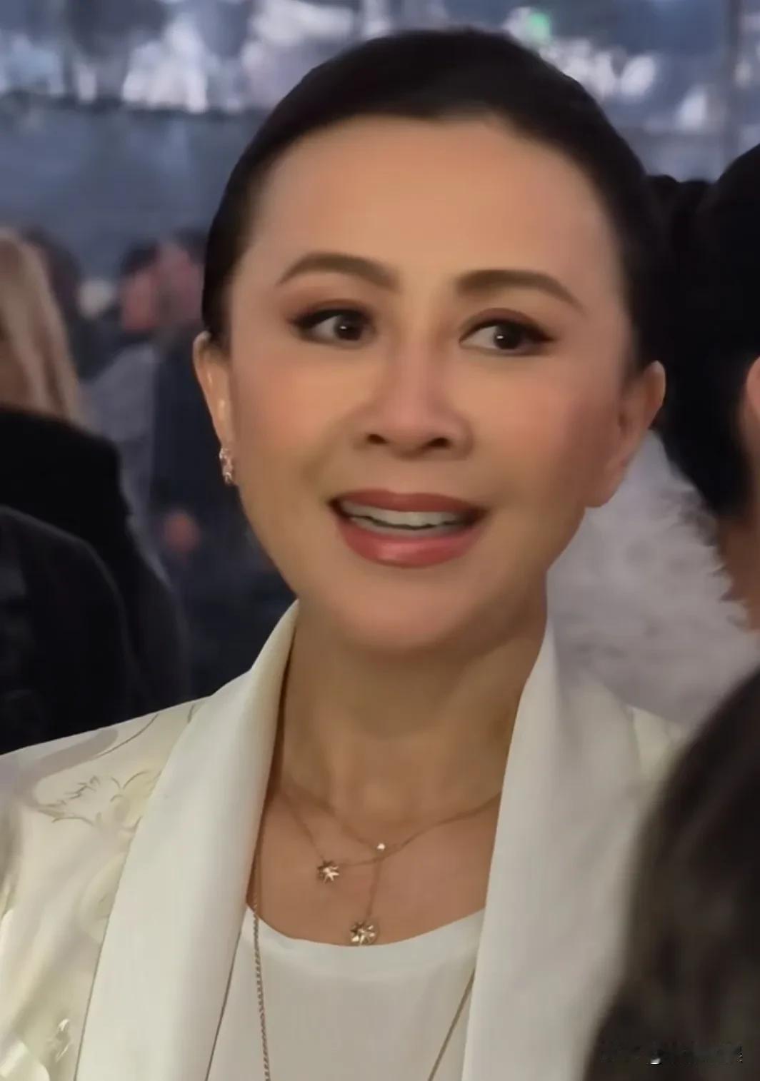 刘嘉玲在时尚界的排面还是挺大的啊,她现身巴黎迪奥看秀,迪奥总监亲自迎接! 穿着一件白色缎面长风衣的她,搭配牛仔裤,时尚、端庄又有活力。 细看嘉玲姐的脸,皮肤超级紧致光滑,脸巨小,五官精致,之前的法令纹和鼻孔外翻这些都不见了,除了颈纹有点重,暴露了年龄。 不过有一说一,快六十岁了,不管用了什么方法,能有这么好的状态,确实是人生赢家了!