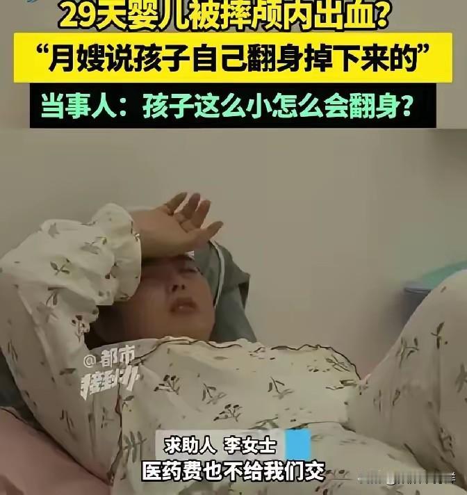 脸都不要了!一女子生完孩子没几天,把孩子送到月子中心托管,自己回房补觉,刚躺下就听见隔壁一声闷响,紧跟着是撕心裂肺的哭嚎,她冲过去时看到月嫂从地上把娃抱起来,额头一片红肿,哭声越哭越微弱,月嫂先说是孩子自己翻了身,她不信,孩子还小翻不了,她掏手机要找负责人,旁边另一个阿姨催着当事人认栽,月嫂这才承认手一滑抱不稳,月子中心说监控坏了看不了,她抱着孩子往医院狂奔,医生先做了检查安排拍片,她在走廊来回踱步等结果,脑子一片空白 刚生完孩子的人身体本就虚弱,想补觉合情合理,却遭遇这种事。29天的婴儿,脖子都没硬,根本无法自主翻身,月嫂的说法纯属编造,明显是想推卸责任。 孩子摔落后,月子中心第一反应不是送医,而是想着甩锅。工作人员劝家长认栽,本质是护短。监控偏偏在出事时损坏,这种巧合过于可疑,难免让人质疑是刻意为之。 检查结果显示,孩子颅内出血,必须立刻住院。家长抱着襁褓中的孩子,面对头上的治疗管子,只能默默流泪。月嫂一句“手滑”,却让婴儿承受无妄之灾,这种疏忽不可原谅。 现在不少人反映,月子中心存在流水线式服务,月嫂培训几天就上岗,专业度根本不达标。也有人说家长自己带娃也可能出错,但花几万块钱选择月子中心,核心就是图专业和安全,不能用“难免出错”掩盖机构的失职。 出事之后,月子中心仅以“监控坏了”回应,拒绝垫付医药费。家长自行承担数万元费用,孩子还在ICU接受治疗。机构拿“合同免责条款”搪塞,完全无视消费者权益,这种经营模式存在严重问题。 这件事的关键,不只是月嫂的个人失误,更暴露了月子行业的监管漏洞和部分机构的侥幸心理。只追求利益,忽视服务质量和安全保障,最终伤害的是消费者的信任。 现在越来越多家庭选择月子中心,行业需要加强自律,相关部门也该强化监管。你会把刚出生的孩子交给这类月子中心吗?这是个别月嫂的问题,还是整个行业需要整改?欢迎留言讨论。