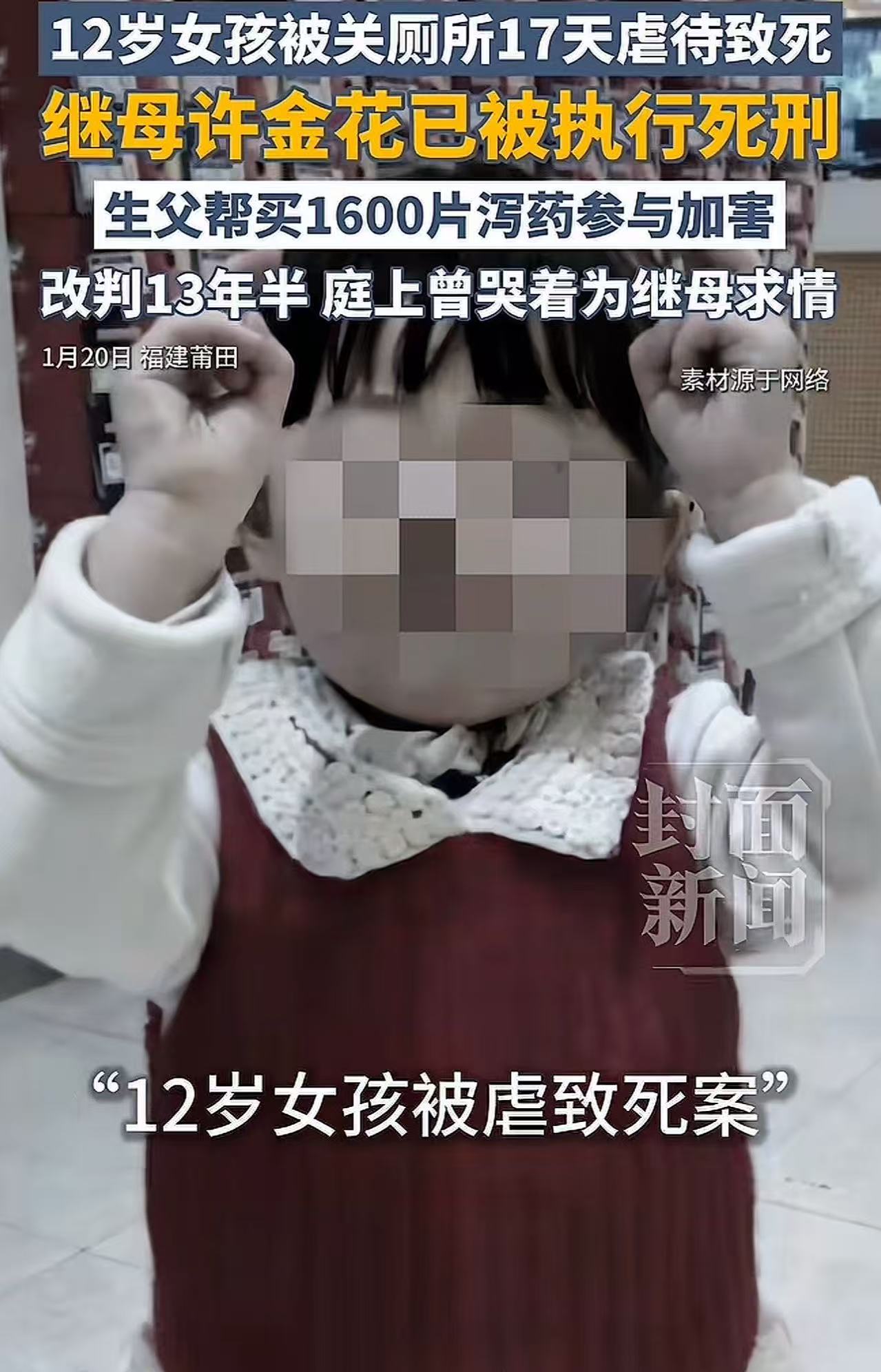 丧尽天良!12岁女孩琪琪,被继母关厕所17天虐待致死,继母被执行死刑!生父帮买1600片泻药参与加害,法院改判12年半!庭上曾哭着为继母求情!网友:“法庭上哭着为继母求情?你女儿在厕所里哭的时候,你在哪?!这种父亲,怎么能轻判?”