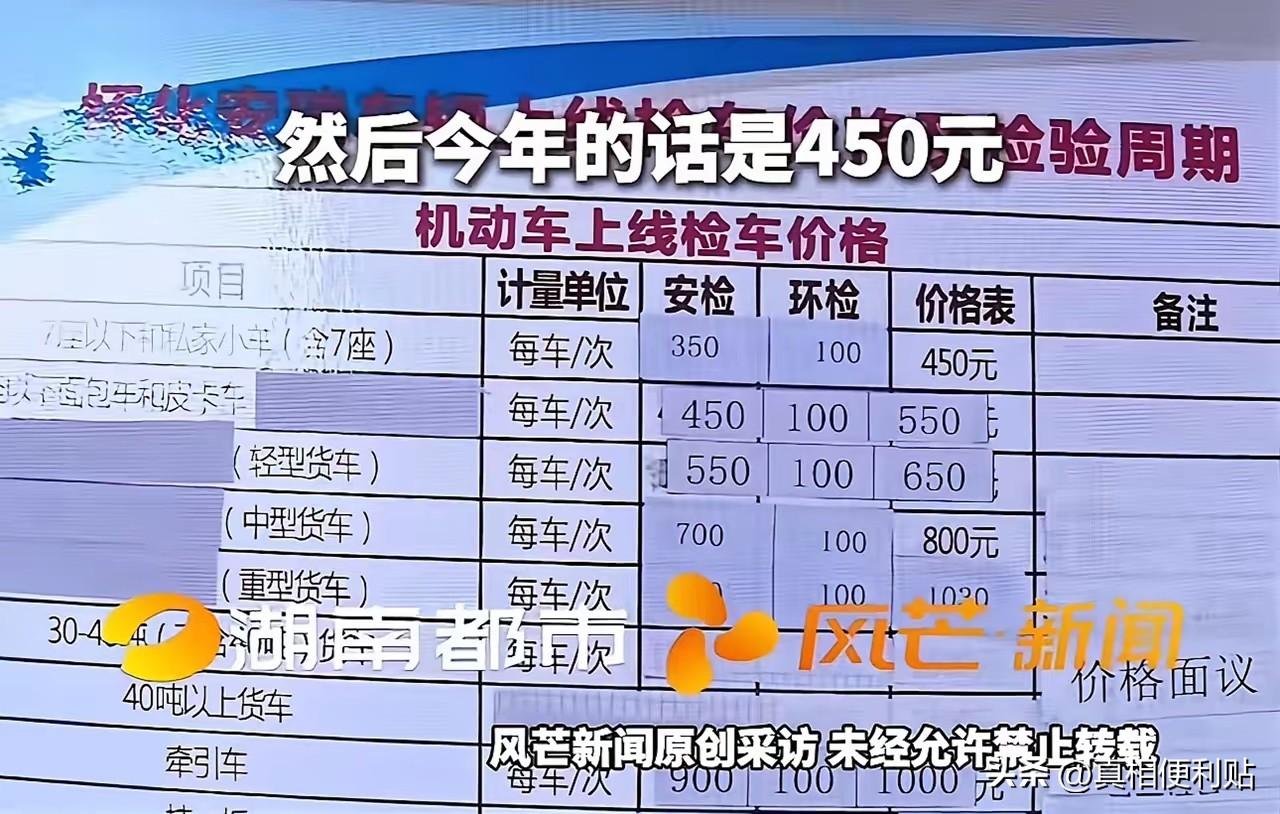 “吃相太难看了!年检费一夜暴涨50%!”湖南怀化,女子去车检,结果被告知检测费用