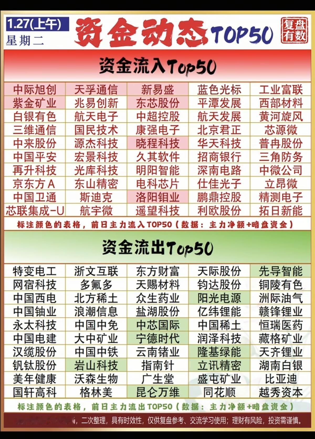1.27周二 主力大资金 抢筹出逃个股榜! 资金抢筹: 贵金属黄金白银强者恒强! 保险,银行大金融护盘,电子化学品,航运港口等。 资金出逃: 电池相关,能源金属,电网设备,船舶制造,化学制药等资金出逃