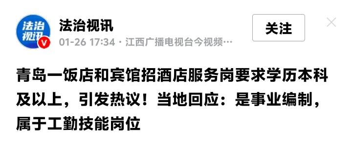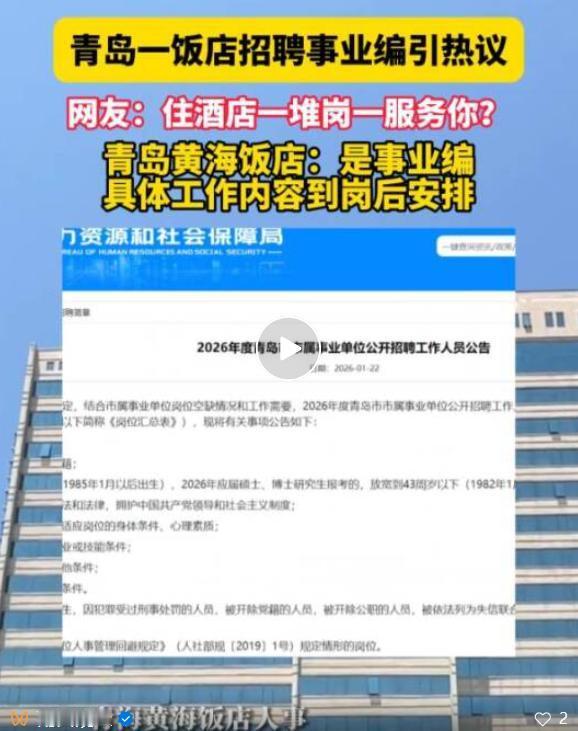 青岛黄海饭店与八大关宾馆招聘引爆全网:事业编“端盘子”岗位,本科学历竟成硬门槛,背后是人才浪费还是体制内香饽饽? 当酒店服务岗贴上本科及以上学历的标签,一场关于学历价值与职业选择的全民辩论瞬间点燃。青岛黄海饭店和八大关宾馆的招聘启事,像一颗投入平静湖面的石子,激起了无数人心中的涟漪。表面看是学历门槛的争议,深层却是人们对职业平等与资源分配的集体焦虑。 事业编制的光环让这份工作不再普通。官方回应明确这是工勤技能岗位,享受体制内待遇,工资按事业编算法执行。这意味着稳定、福利与长期保障,在就业市场波动频繁的今天,这样的岗位自然成为众人眼中的香饽饽。但问题也随之而来:酒店服务需要高学历吗? 网友的质疑并非空穴来风。当端盘子刷碗都需要本科文凭,我们不禁反思学历是否正在贬值。现实中,许多本科生甚至研究生面临就业难,而体制内一个服务岗却要求本科以上,这反差刺痛了无数寒窗苦读的学子。学历本该是能力的证明,何时成了基础岗位的装饰? 从人性角度看,这场争议暴露了人们对公平的渴望。有人质疑这是“萝卜坑”招聘,为特定人群量身定制;也有人认为事业编本就该择优录取。情绪在不满与理解间摇摆,每个人都在用自己的经历衡量这份工作的价值。体制内的稳定对比民企的拼搏,让人心生感慨。 但换个角度,事业编服务岗或许正是社会进步的缩影。随着服务业专业化提升,对员工素质的要求自然水涨船高。青岛这两家宾馆接待对象特殊,服务需要更高标准,学历要求可能关乎综合素养而非单纯技能。这不仅是端盘子,更是代表城市形象的重要窗口。 然而,资源的合理分配仍是核心议题。事业编岗位稀缺,若大量集中在基础服务领域,是否会造成人才浪费?当本科生争抢服务岗,那些真正需要高学历的科研、技术岗位又该如何吸引人才?这场招聘引发的思考,早已超出青岛一地,直指全国就业生态。 站在用户立场,这种矛盾心理尤为真实。一边吐槽学历内卷,一边渴望稳定编制;一边指责资源不公,一边暗自羡慕机会。这种共鸣让文章充满话题性,读者不仅想看完,更想留言吐槽、分享自己的故事。毕竟,谁没在职业选择中挣扎过呢? 最终,事件留给我们的不仅是热议,更是对教育、就业与体制的深层反思。学历不该成为束缚,编制不应是唯一追求。如何在现实与理想间找到平衡,或许才是每个人需要解答的终身课题。而你的选择又是什么? (来源:南昌晚报综合第一现场、荔枝新闻) 学历内卷 事业编制