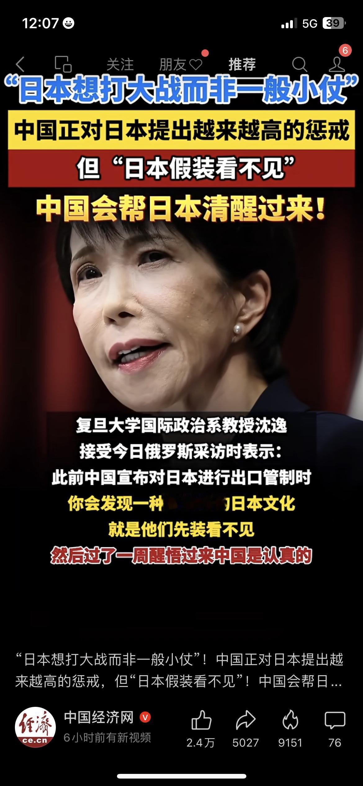 🇨🇳日本想打“大战”?中国出手帮它清醒! 复旦教授沈逸直言:日本想打“大战”而非一般小仗,面对中国的出口管制等惩戒措施,还在假装看不见,典型的“先装睡、后醒悟”的日本式反应。 咱们的态度很明确:装睡叫不醒,那就直接帮它清醒过来! 你觉得这波惩戒能让日本认清现实吗? 中日关系 沈逸教授