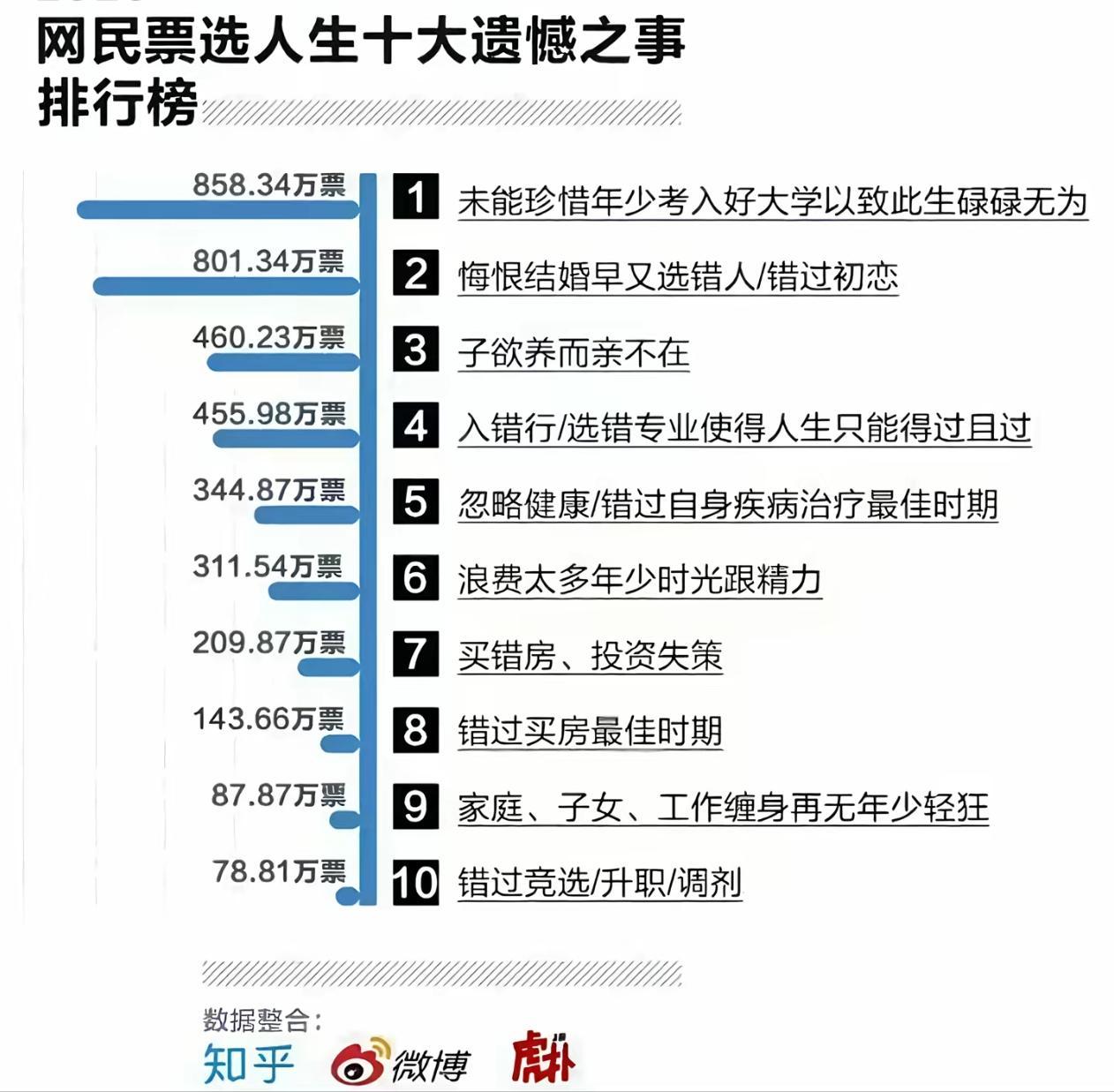 “人生十大遗憾排行榜,你中招了吗?”😭💔世间的遗憾 最让你懊悔的事