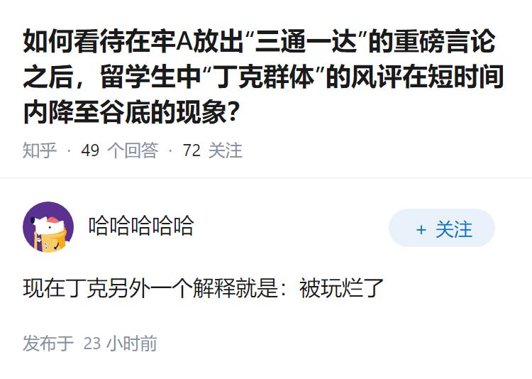 如何看待在牢A放出“三通一达”的重磅言论之后,留学生中“丁克群体”的风评在短时间内降至谷底的现象?