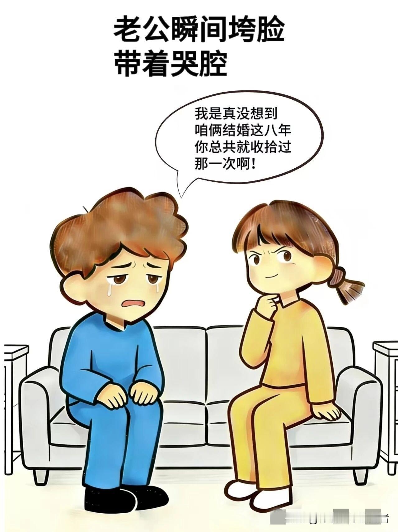 趣味漫画:老公:我这家务活都干了八年了,老婆:那你当初为什么选择我呀,老公:第一次见你收拾房间就认定你,没想到你只勤快过那一次