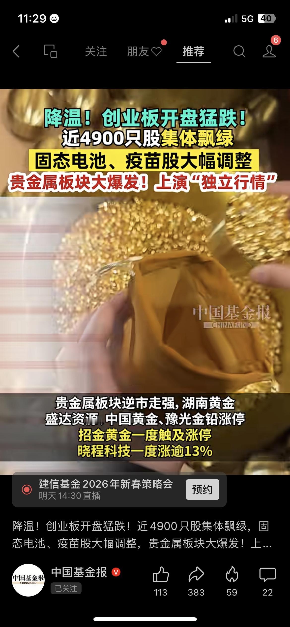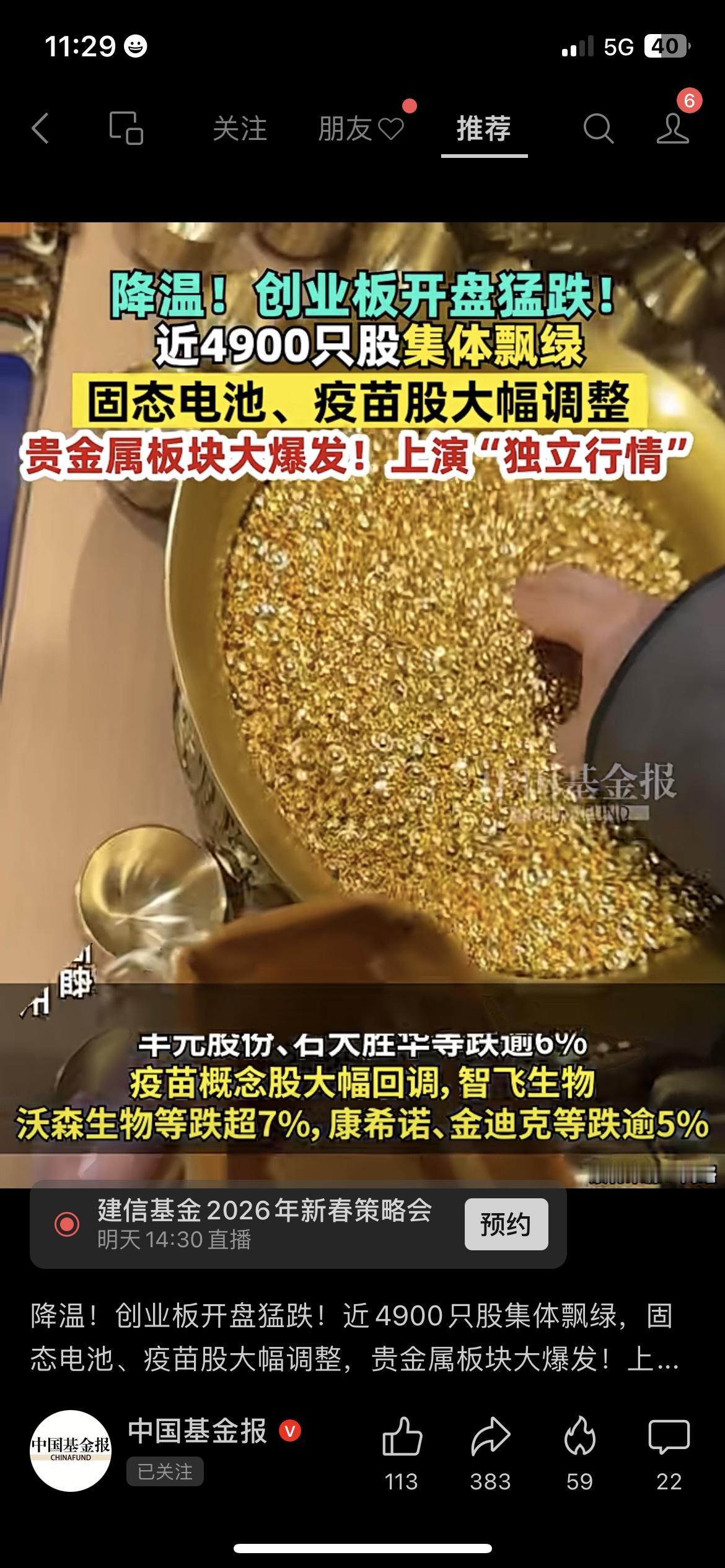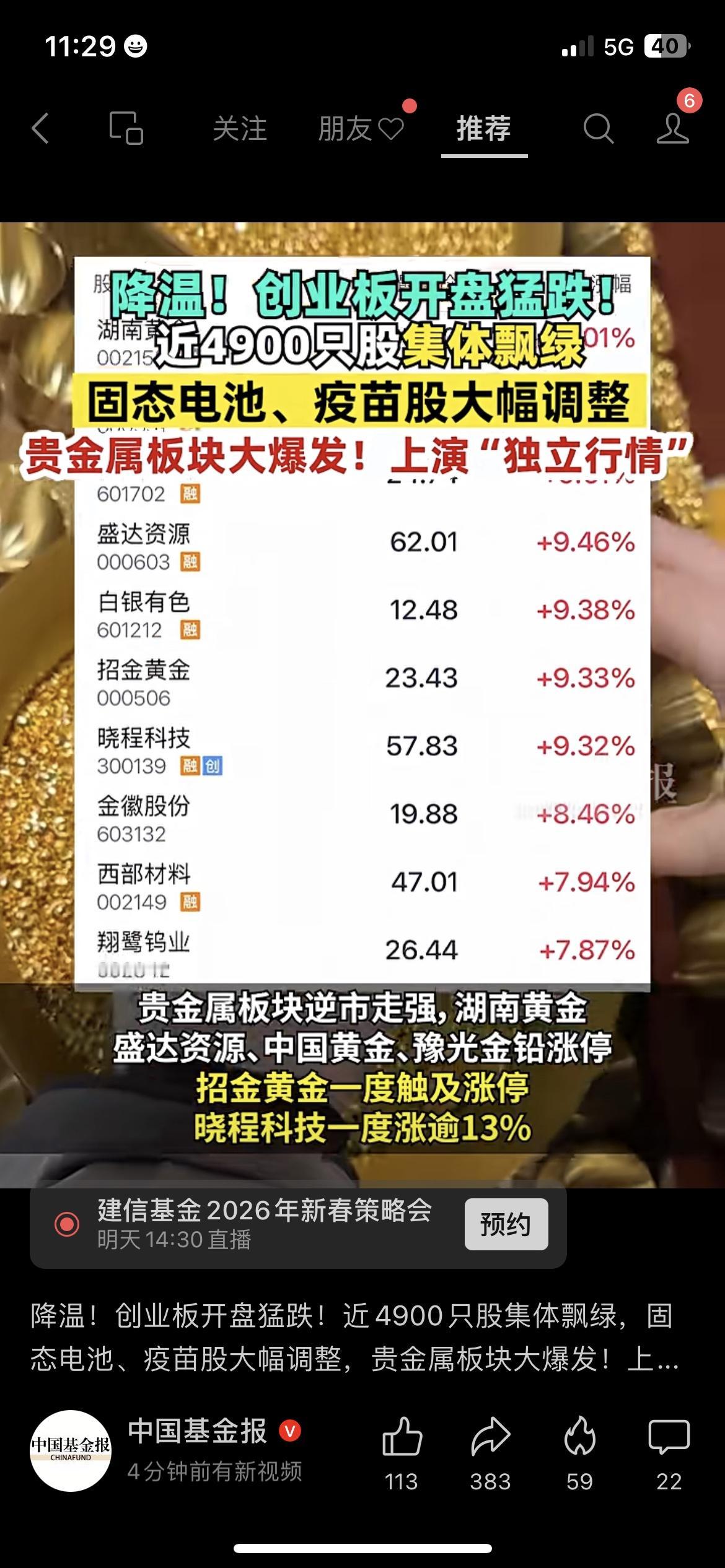⚠️A股大分化!4900只股飘绿贵金属逆势涨 创业板开盘猛跌,近4900只股集体飘绿,固态电池、疫苗股大幅调整!贵金属板块独挑大梁,盛达资源、白银有色等多股大涨超9%,身边做短线的朋友说,这是资金避险情绪直接拉满了。 咱们普通人别追个股,选流动性好、波动稳的贵金属ETF更省心! 你会趁跌布局贵金属ETF,还是继续持币观望? A股 贵金属 财经热点 市场有风险,投资需谨慎