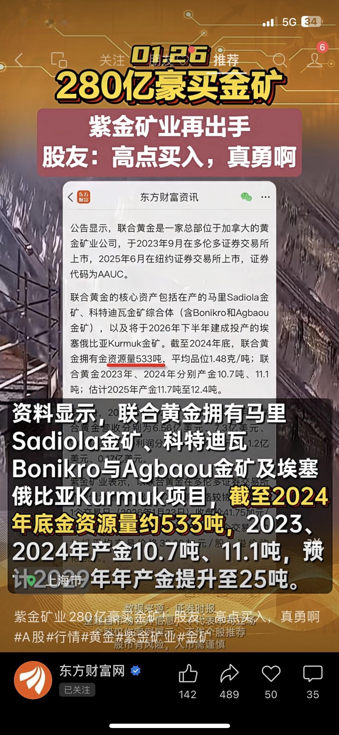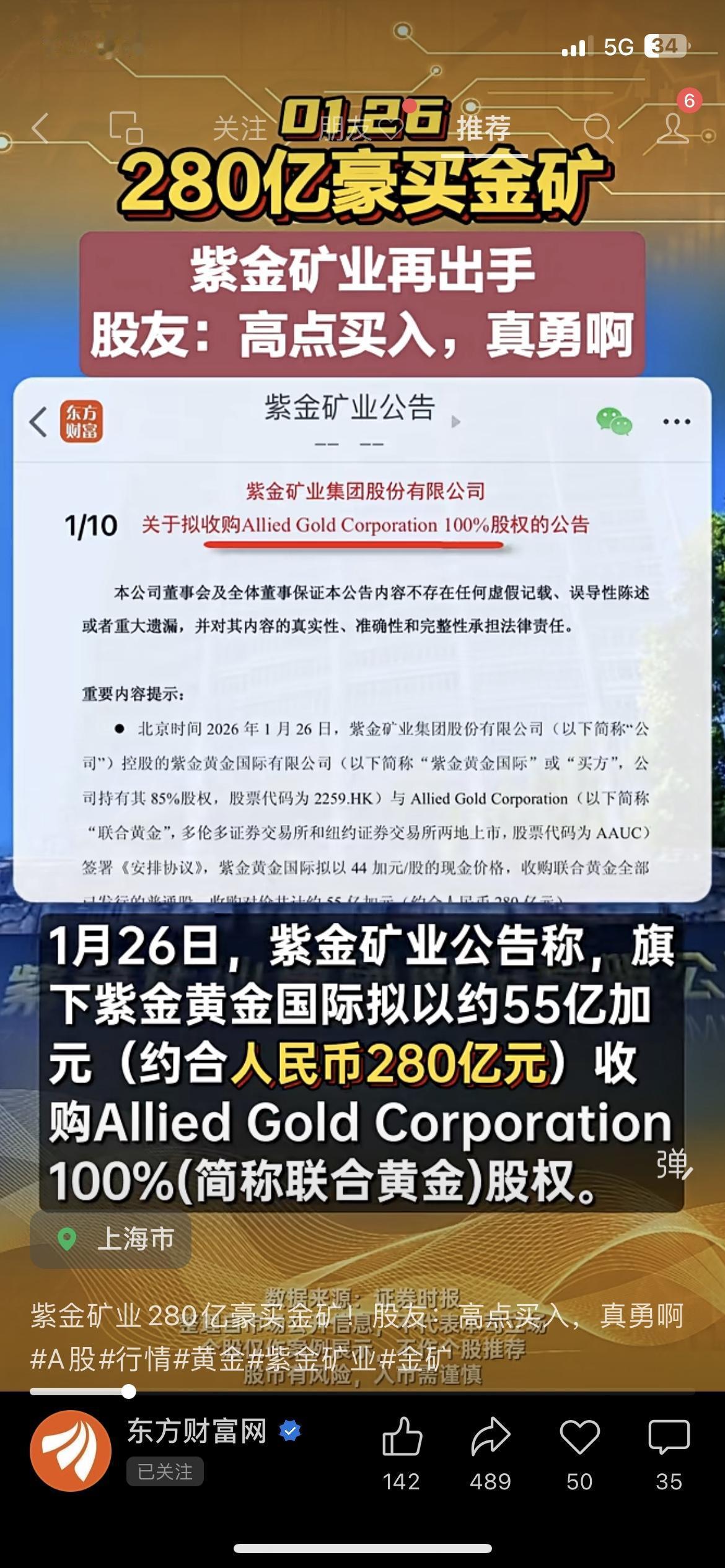 💥紫金矿业放大招!280亿豪买海外金矿 紫金矿业砸280亿收购海外金矿,拿下533吨黄金资源,股友直呼“高点买入是真敢冲”!我做矿业投资的朋友说,这是头部矿企布局长期资源储备的信号。 你觉得这是紫金矿业的利好,还是高位接盘? 紫金矿业 黄金 财经热点紫金锂矿 市场有风险,投资需谨慎