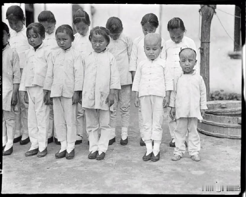 这张照片是美国社会经济学家、摄影家西德尼·戴维·甘博(Sidney D. Gamble)在20世纪初拍摄的,它记录了中国近代社会救助机构里的儿童群像。 画面中是一群穿着统一浅色中式服装的孩子,他们大多表情凝重、低头站立,这些孩子是“希望之门”(Door of Hope)救援之家的收容者,这个机构也被称为济良所,主要救助被拐卖,虐待或无家可归的女孩。 这张照片的拍摄地点是北京的“希望之门”,它是当时由警方与传教士合作运营的慈善机构。 上海也有同名的济良所,由美国传教士包慈贞在1901年创立,专门救助风尘女子和困境中的女性儿童。 西德尼·甘博在1908至1932年间四次来华,用镜头记录了中国社会的底层生活、城市风貌和民间百态。他的照片为研究民国初期的中国社会提供了珍贵的视觉资料。 原图中的孩子们大部分都是低头站立,真心希望所有苦难终将过去,抬头看世界[赞]