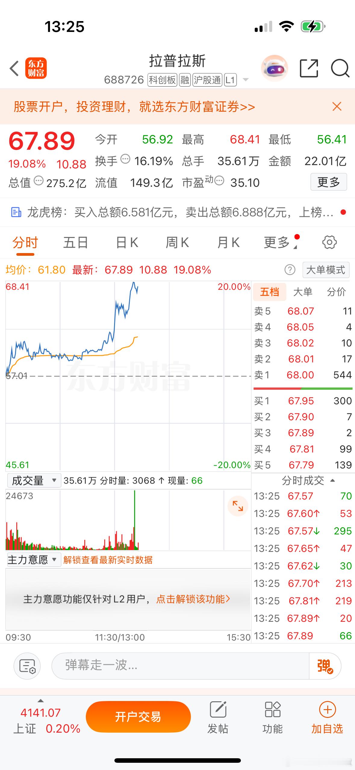 光伏继续强化,快跌停的钧达股份也起来了点,宇晶股份开盘拉板反包,拉普拉斯大涨19个点也是个反包,大成交的还是要看一下迈为股份能不能反包,航天电子下午也有表现不过离反包都还有点距离 。
