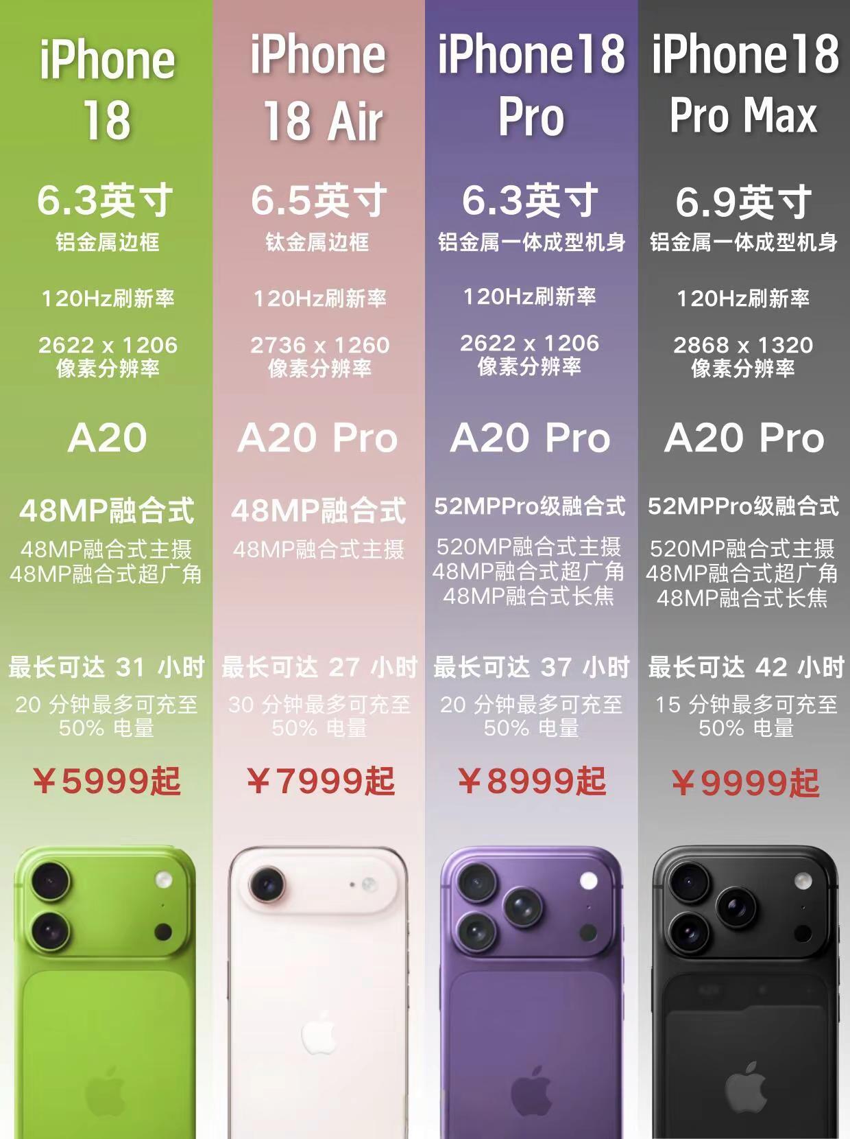 iPhone18系列对比一图看懂。iPhone18系列对比一图看懂,新品提前曝光,看完你心动了吗?iPhone iPhone18 苹果18