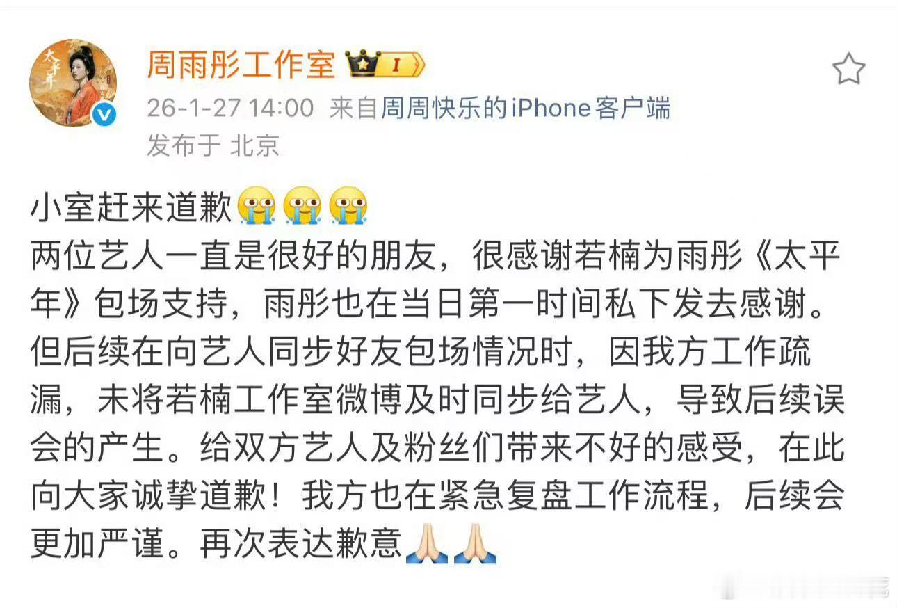 周雨彤工作室道歉 无语了道歉也不行不道歉也不行!一点小事被无限放大,只想说放过两位女演员吧!俩人关系好着呢别瞎操心了!