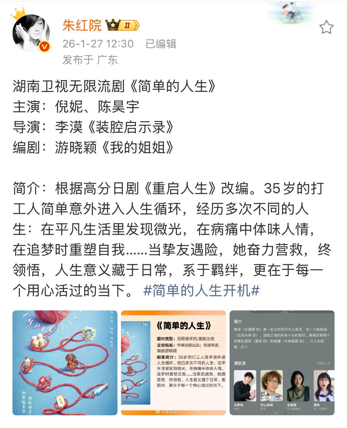 《重启人生》翻拍🍉:倪妮、陈昊宇导演:李漠《我在他乡挺好的》《装腔启示录》《180天重启计划》《三悦有了新工作》编辑:游晓颖《我的姐姐》《小小的我》《三悦有了新工作》倪妮陈昊宇或翻拍重启人生重启人生翻拍 倪妮陈昊宇