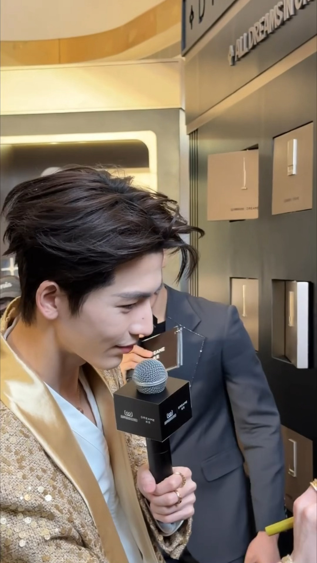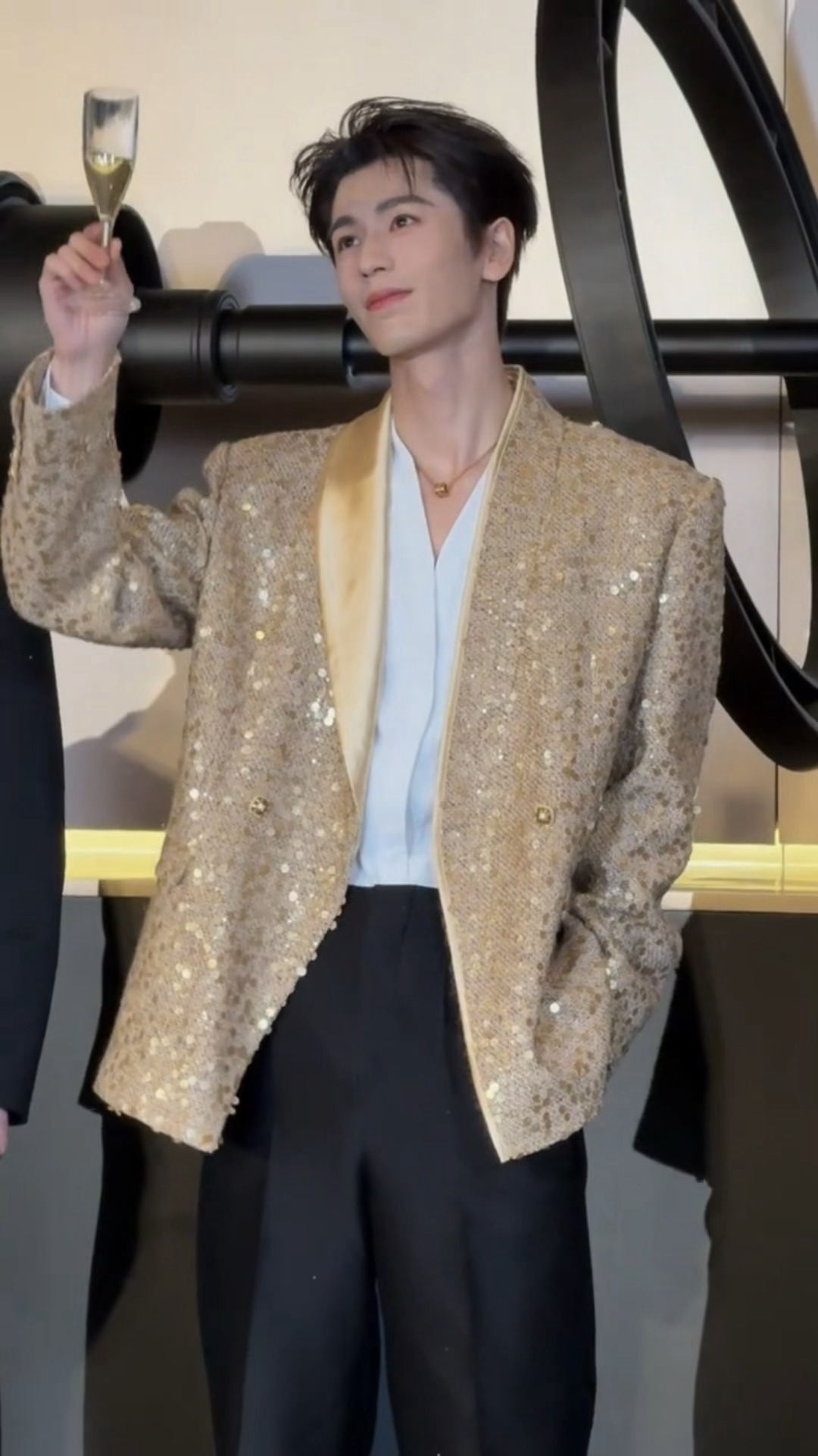 凌帝上班!!!!张凌赫金色闪片西装 张凌赫苏州线下活动