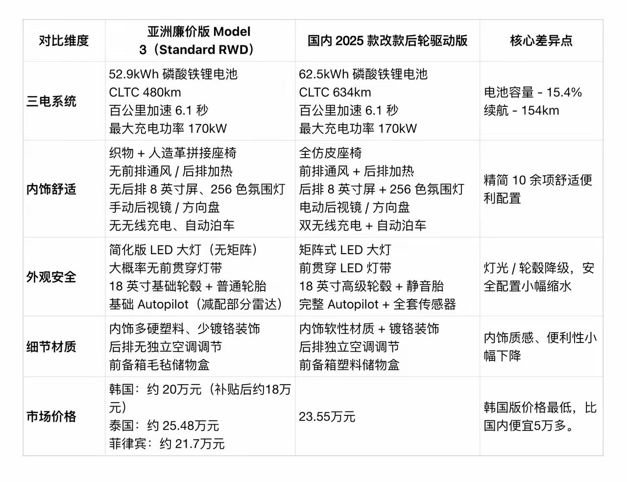 目前廉价版的MODEL3已经在韩国上市了,价格算上韩国的补贴后折合人民币17万多,比现款的国产要便宜6万多,有趣的是这款车是我们上海工厂生产的,运过去还有关税和运输费用,价格还是很香的,就是不知道国内售价会是多少? 如果国内是18.99万,你会选择廉价版MODEL3吗?