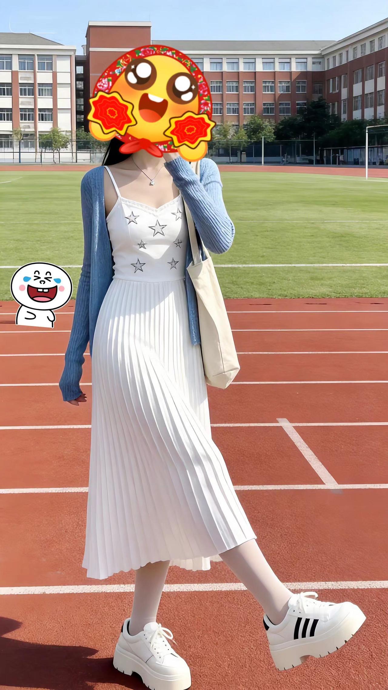少女感ootd 学校操场拍照 理想女友穿搭 温柔穿搭 百褶长裙穿搭