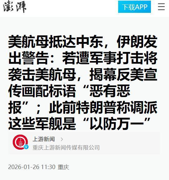 美航母刚到中东,不到24小时,伊朗发出毁灭警告,中方一句话定调   中东这片火药桶,又因美国的军事调动被点燃了引线。当地时间 1 月 25 日,当 “亚伯拉罕・林肯” 号核动力航母带着宙斯盾舰、核潜艇组成的庞大编队出现在中东海域时,恐怕没人想到,不到 24 小时,伊朗的 “毁灭警告” 就接踵而至,而中方早已用一句话定下了理性基调。   事情得从几天前的 “空军一号宣言” 说起。1 月 22 日,特朗普在总统专机上对着记者放话:“我们正调集重兵驶向伊朗,这是一支庞大的力量。”   这话可不是空穴来风,美军早在上个月就开始悄悄向中东增兵,F-15 战斗机中队从英美基地部署到约旦,40 架次运输机忙着运送物资,“萨德”“爱国者” 反导系统也在往卡塔尔、沙特赶,连英国都派了 “台风” 战斗机来撑场面。   这次 “林肯” 号的到来,更是把军事威慑拉到了顶点,这艘搭载着 F-35C 隐形战机、EA-18G 电子战飞机的航母,加上随行的 “莫比尔湾” 号巡洋舰和多艘驱逐舰,构成了能随时发动 “外科手术式打击” 的完整作战体系。   可美军的算盘刚铺开,伊朗就用硬气回应给了他们一记闷棍。1 月 26 日,也就是 “林肯” 号抵达的第二天,伊朗伊斯兰革命卫队总司令帕克普尔直接放话:“我们扣动扳机的手指已然就位,随时准备执行最高领袖的命令。”   这话可不是喊口号,伊朗议会国家安全委员会成员萨尼紧接着补刀:“一旦遭袭,我们的反击会覆盖从霍尔木兹海峡到地区内所有美国利益,手段绝对超出预判。” 外交部发言人巴加埃更直指要害:“美国的武力威胁违反国际法,伊朗会让侵略者付出后悔的代价。”   最绝的是伊朗的 “宣传战”,德黑兰革命广场当天揭幕了一幅反美宣传画:画面里美军航母甲板布满损毁战机,舰后血痕形如美国国旗,配文 “种下风者,必收获风暴”。   这画里藏着伊朗的底气:他们手里有数千枚弹道导弹和巡航导弹,还有能发动饱和攻击的无人机群,军用无人机专家都承认,这些低成本武器能对美军高价值舰艇构成切实威胁。更别提霍尔木兹海峡这张 “王牌”,一旦封锁,全球石油运输都得抖三抖。   就在美伊剑拔弩张之际,中方早已亮明了态度。1 月 23 日,外交部发言人郭嘉昆在记者会上明确表态:“希望伊朗保持国家稳定,希望各方珍惜和平,保持克制,通过对话解决分歧。”   这话看似简单,却戳中了问题的核心。要知道,美伊对峙可不是一时冲动,从 1979 年伊斯兰革命后,两国从断交到制裁,从无人机被击落到核协议拉锯,矛盾积了四十多年。   特朗普政府的 “极限施压” 没能压垮伊朗,反而让伊朗更坚定地发展防御力量;而美国看似兵强马壮,却也怕陷入战争泥潭,毕竟 2025 年偷袭伊朗核设施的 “佯动战术” 已用光了突然性,现在连迪戈加西亚岛的轰炸机都没异动。   其实明眼人都能看出,双方都在 “装硬”。美国调兵更多是政治博弈:一方面给以色列撑腰,巩固中东影响力;另一方面转移国内注意力,毕竟 “强硬形象” 向来是特朗普的竞选筹码。   伊朗则是 “以硬防硬”,嘴上喊着 “击沉航母”,实则是想抬高美国动武的成本,毕竟真打起来,本国基础设施和经济都会遭殃。   连以色列都在悄悄做准备,旅游部制定了疏散 4.2 万游客的预案,民航局警告 “可能关闭领空”,这哪是盼着打仗的样子?沙特、卡塔尔这些海湾国家更直接,偷偷劝阻美国别开火,怕被卷入战火。   中方的表态恰恰点破了这层窗户纸:打仗没有赢家,对话才是正途。作为联合国安理会常任理事国,中方的立场从来不是 “选边站”,而是站在和平一边。看看俄罗斯的表态也能明白,佩斯科夫那句 “会严重破坏地区局势”,说出了多数国家的心声。   现在美伊就像两个攥紧拳头的人,谁都不愿先松手,但也没人真敢先出拳,美国怕 “打了收不住”,伊朗怕 “扛不住全面打击”,而中方的 “克制呼吁”,就是给他们一个台阶下。   不过也得警惕 “擦枪走火” 的风险。美军在中东的战备演习还在搞,伊朗的导弹部队也在警戒,黎巴嫩真主党还放话 “不会袖手旁观”,任何误判都可能点燃连锁反应。   但说到底,霸权主义那套早已行不通了,“林肯” 号再凶,也吓不倒有防御底气的伊朗;特朗普的威胁再狠,也挡不住国际社会求和平的呼声。就像当年 “尼米兹” 号在南海摔了飞机灰溜溜返航,美国要是真把伊朗逼急了,最后丢脸的可能还是自己。   现在的中东,就差个 “降温开关”。中方的 “对话倡议” 已经递到了桌上,接下来就看美伊有没有勇气按下它。毕竟 “种下风者必收风暴”,这句写在伊朗宣传画上的话,既是警告美国,也是提醒所有人:和平才是最该守护的底线。