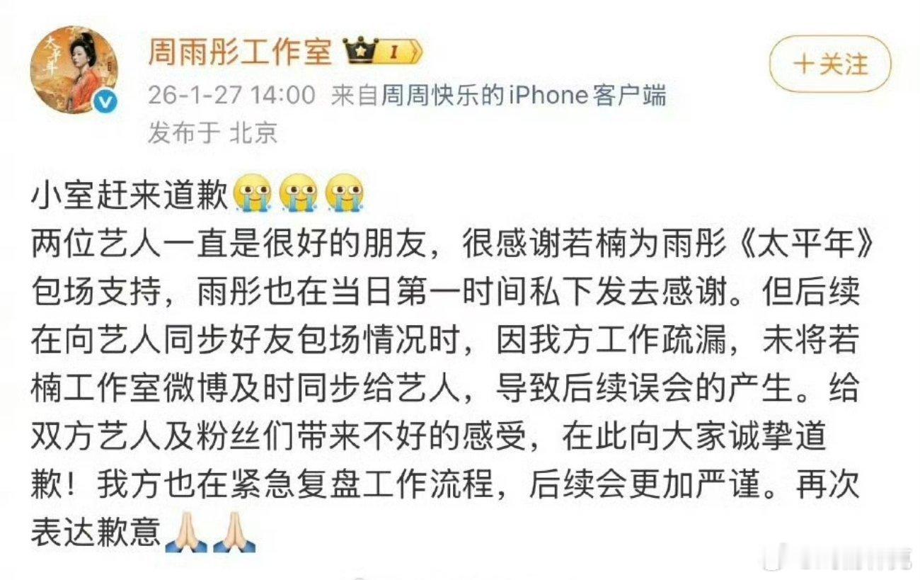 周雨彤工作室道歉这事居然还闹大了周雨彤回复了章若楠粉丝