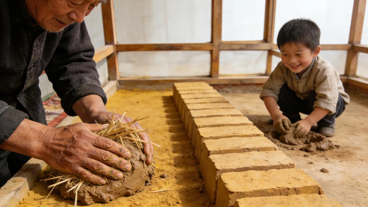 东北大炕之系列三 打土坯 东北大炕的模样,总在记忆里萦绕,藏着我儿时数不尽的欢乐,而这大炕的根基,便是那一块块亲手打制的炕坯。 儿时家境清贫,没有现成的烧制红砖,父亲也舍不得花那份钱,便总在夏秋交接、农忙未至的时日,选一个晴好天,亲手制作炕坯,我也总爱屁颠屁颠跟在父亲身后,凑着热闹搭把手。 打土坯的第一步,是选土和备料。要挑粘性足的黄土,用筛网细细筛过,滤去粗粒,只留细腻的土面;再备好稻草,若是有麻便更好,晾干后用铡刀切成手指长短的小段,这草料混进泥里,能增坯的韧劲儿,让炕坯更稳固,还能防止风干后开裂。 制作炕坯少不了长方形的木模具,一切准备妥当,便开始和泥。往筛好的黄土里加水调和,稠稀要拿捏得恰到好处,太稀易塌,太干难塑形,再把切好的草料拌进泥里,揉匀后填进模具,用手把表面抹得平整光滑,随后脱模,将湿坯摆在空地上自然晾晒。切记不能暴晒,不然炕坯极易裂纹,就成了废坯。 晾晒的几日里,最怕的就是突降大雨,一旦遇雨,就得赶紧把炕坯摞起来,用塑料布仔细盖好,生怕被雨水泡烂,前功尽弃。待几日晴好,炕坯彻底干透,便坚硬结实,能派上大用场了——不光能搭炕、盖房子,还能砌围墙,搭鸡圈、鸭圈、牛圈也样样合适。 儿时的我,总跟在父亲身后,递个工具、扶个模具,做些力所能及的小事,看着一块块炕坯在父亲手中成型,伴着泥土的清香和暖阳的温度,那段时光,简单又满是欢喜。