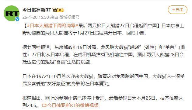 1月26日,日本共同社声称:对于大熊猫爱好者来说,最可怕的不是日本最后两只大熊猫